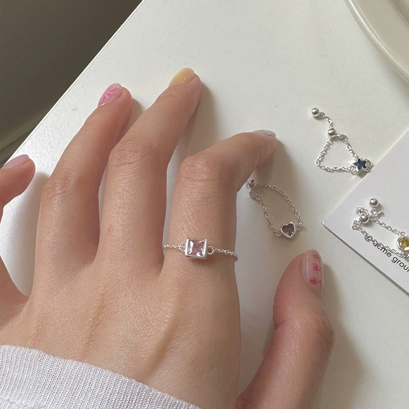 | nameOriginal | Rainbow candy color chain pull ring women's high-end love geometric S925 silver adjustable ring index finger ring |