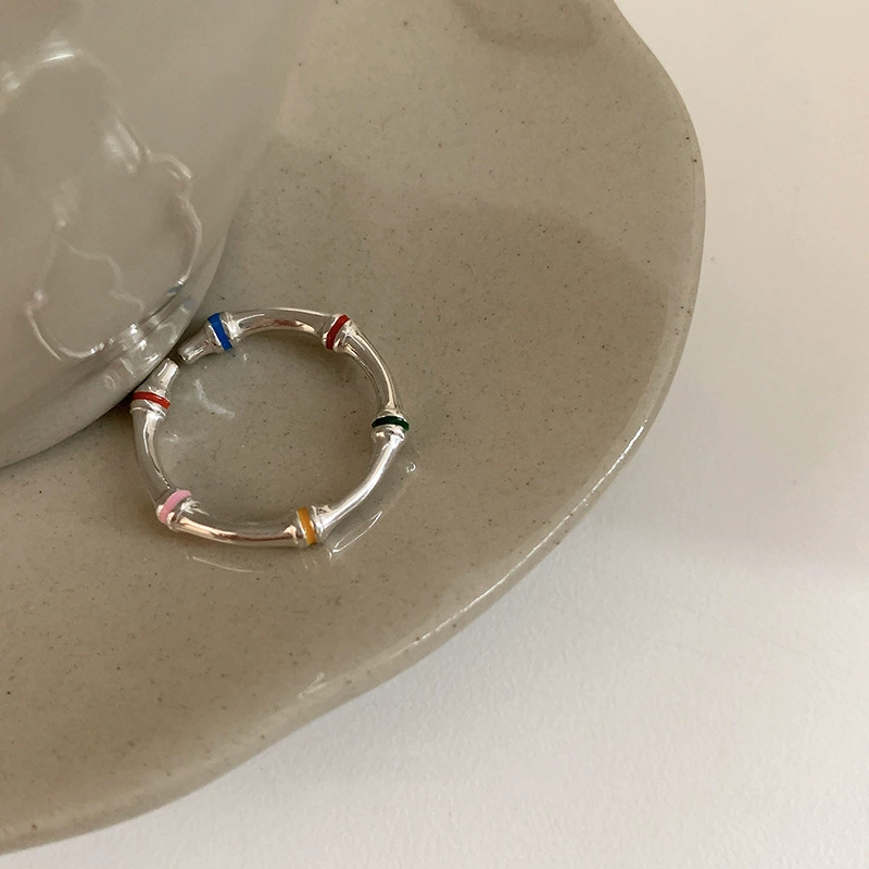 | nameOriginal | Rainbow drip glaze ring for women, geometric, irregular, fashionable and high-end, S925 silver open ring, bamboo index finger ring, trendy |