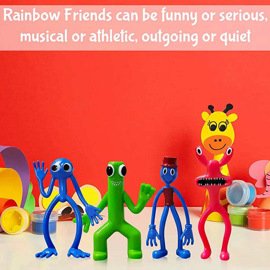 The Rainbow Friends Toys are crafted from non-toxic, odorless, and durable materials, ensuring their safety and longevity. The high-quality paint used on these figures adds to their appeal, making them an excellent choice for fans and a perfect Easter gift for kids. Measuring between 3.5 and 4.5 inches, these figures are the same size as shown in the pictures, making them ideal for birthday decorations, cake toppers, and Rainbow Friends party supplies. Both boys and girls will adore these colorful action figures, which can be used for both serious and humorous play. The Rainbow Friends figures serve as a reminder to children to embrace their differences, as that is what makes each of us unique. These collectible toys are perfect for starting a new collection, adding to an existing one, trading with friends, or giving as gifts.