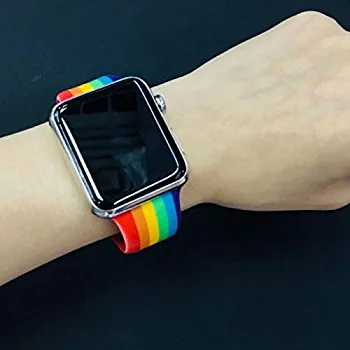 Rainbow Silicone Sport Band for Apple Watch Series. Compatible with iWatch Ultra/8/7/6/se/5/4/3/2/1 in 49mm / 45mm / 44mm / 42mm sizes.