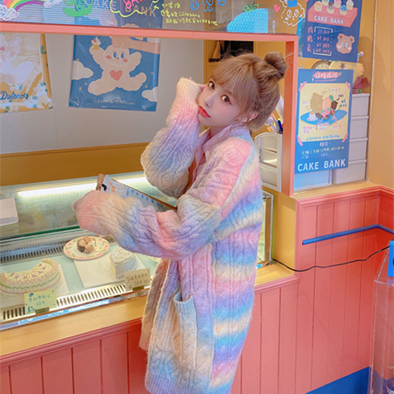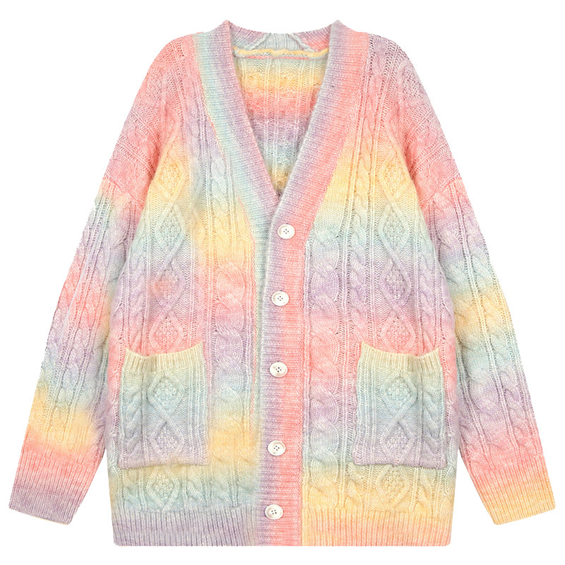 | nameOriginal | Rainbow Soft Waxy Loose Sweater Women's 2022 Spring and Autumn New Style Outer Wear Lazy Style Japanese Wool Knitted Cardigan Jacket |
