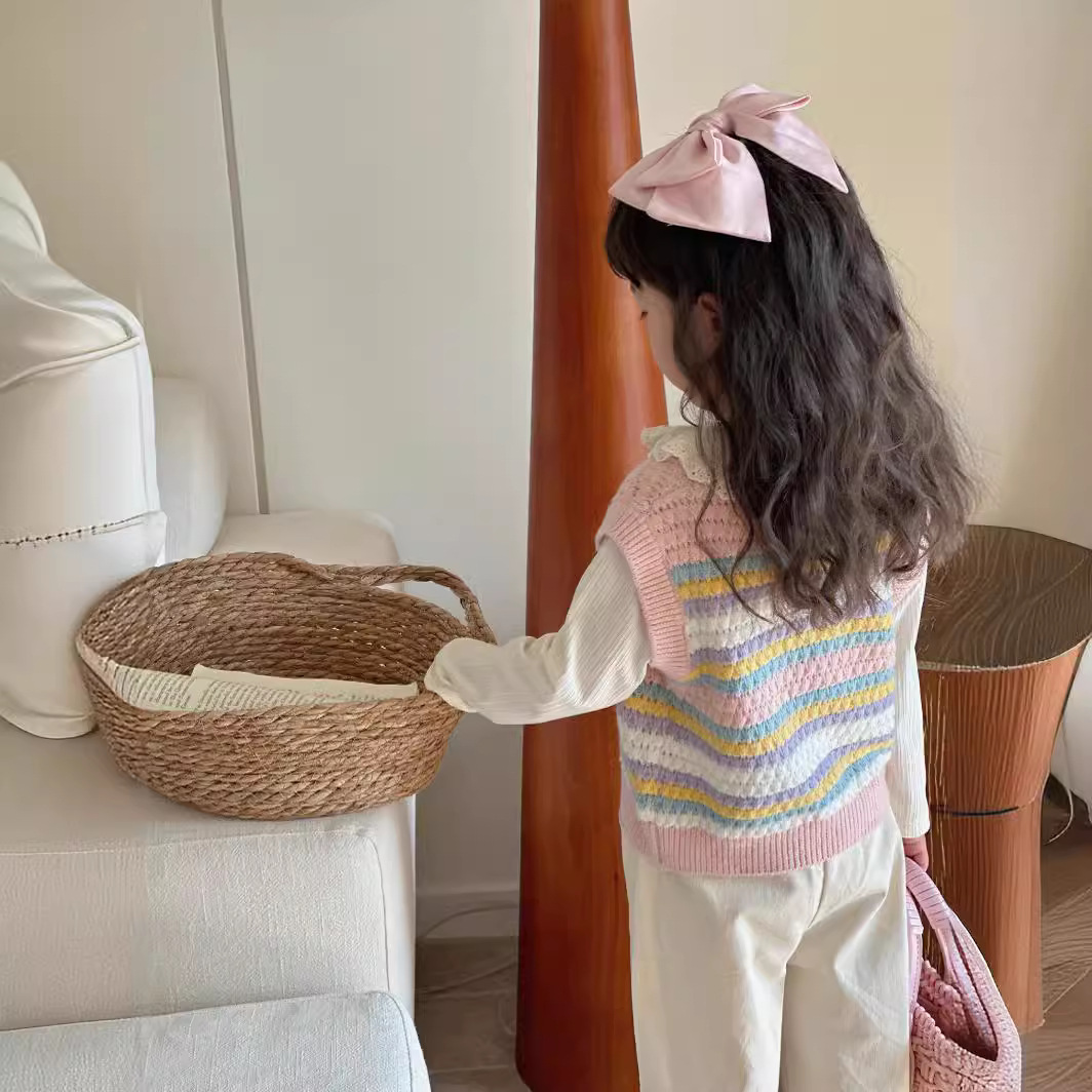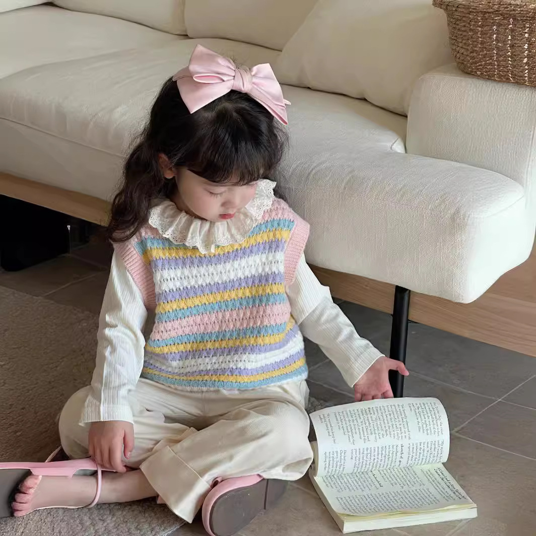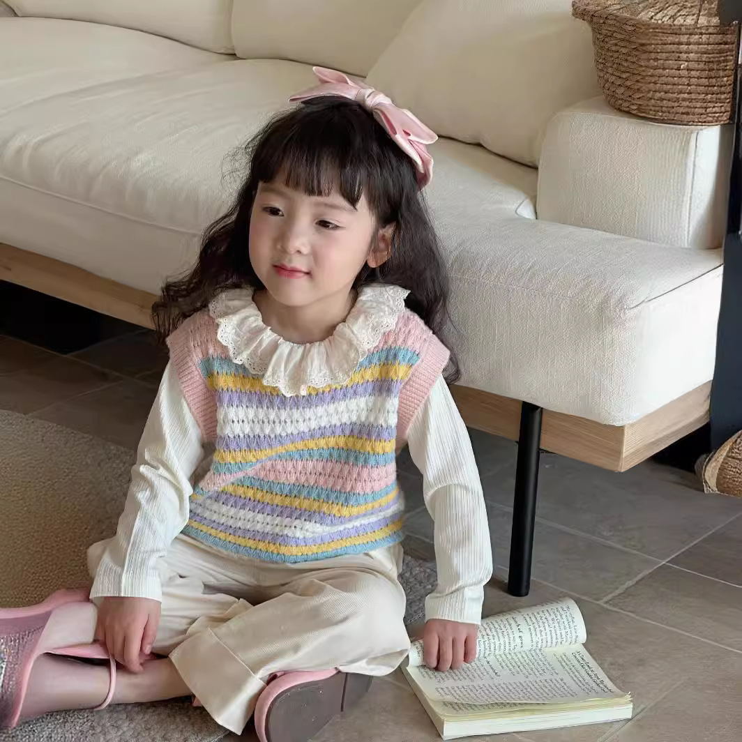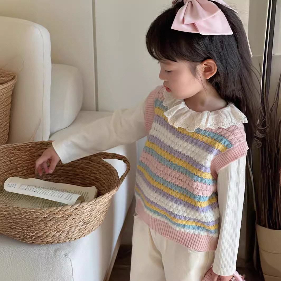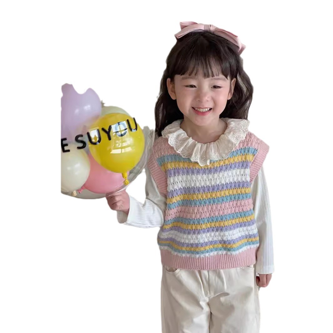 Rainbow Striped Knitted Girls' Vest 2024 Spring and Autumn New Arrival Sweater All-match Korean Style Vest Women's Sleeveless Top Trendy