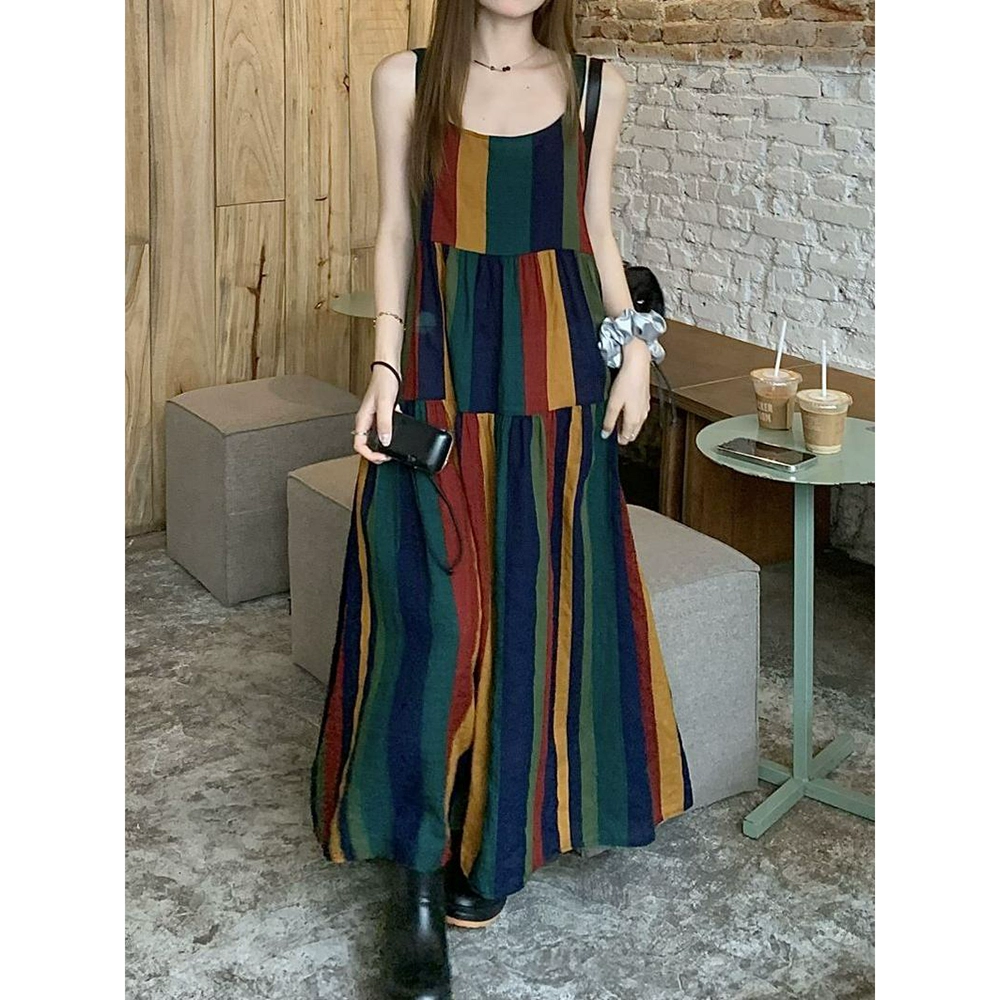 | nameOriginal | Rainbow striped summer niche casual suspender dress |
