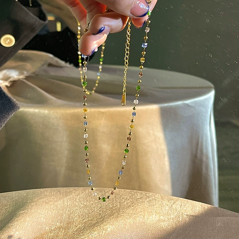 | nameOriginal | Rainbow Sugar Cube Necklace Female Clavicle Chain 2022 New Summer Titanium Steel Non-Fading Student Clear Internet Celebrity Necklace |
