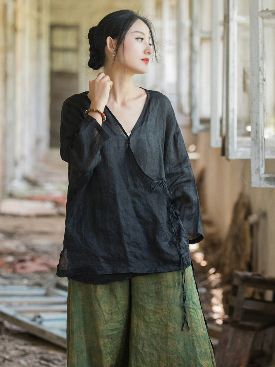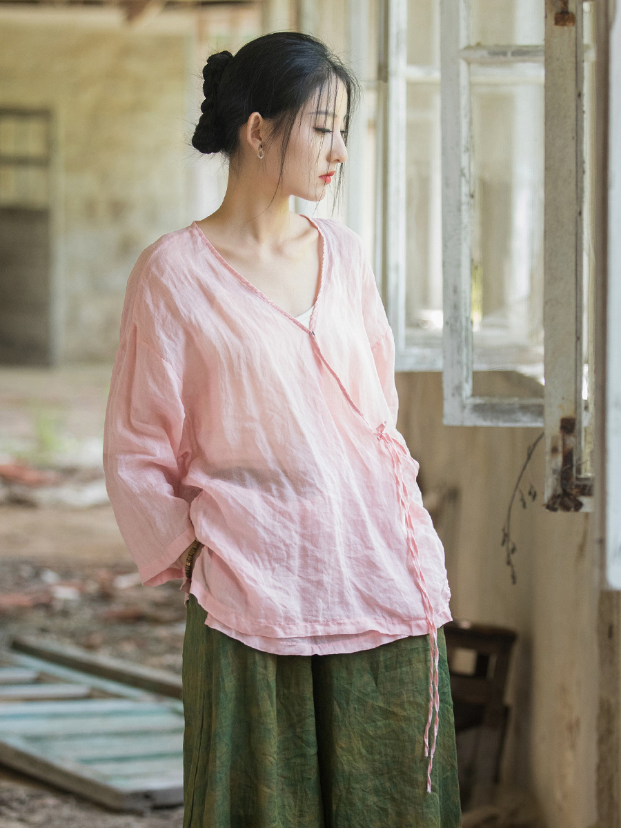 | nameOriginal | Ramie 100 Lace-up Casual Loose Cardigan 24 Spring Cotton and Linen Women's New Arrival Zen Modified Women's Sunscreen Shirt |