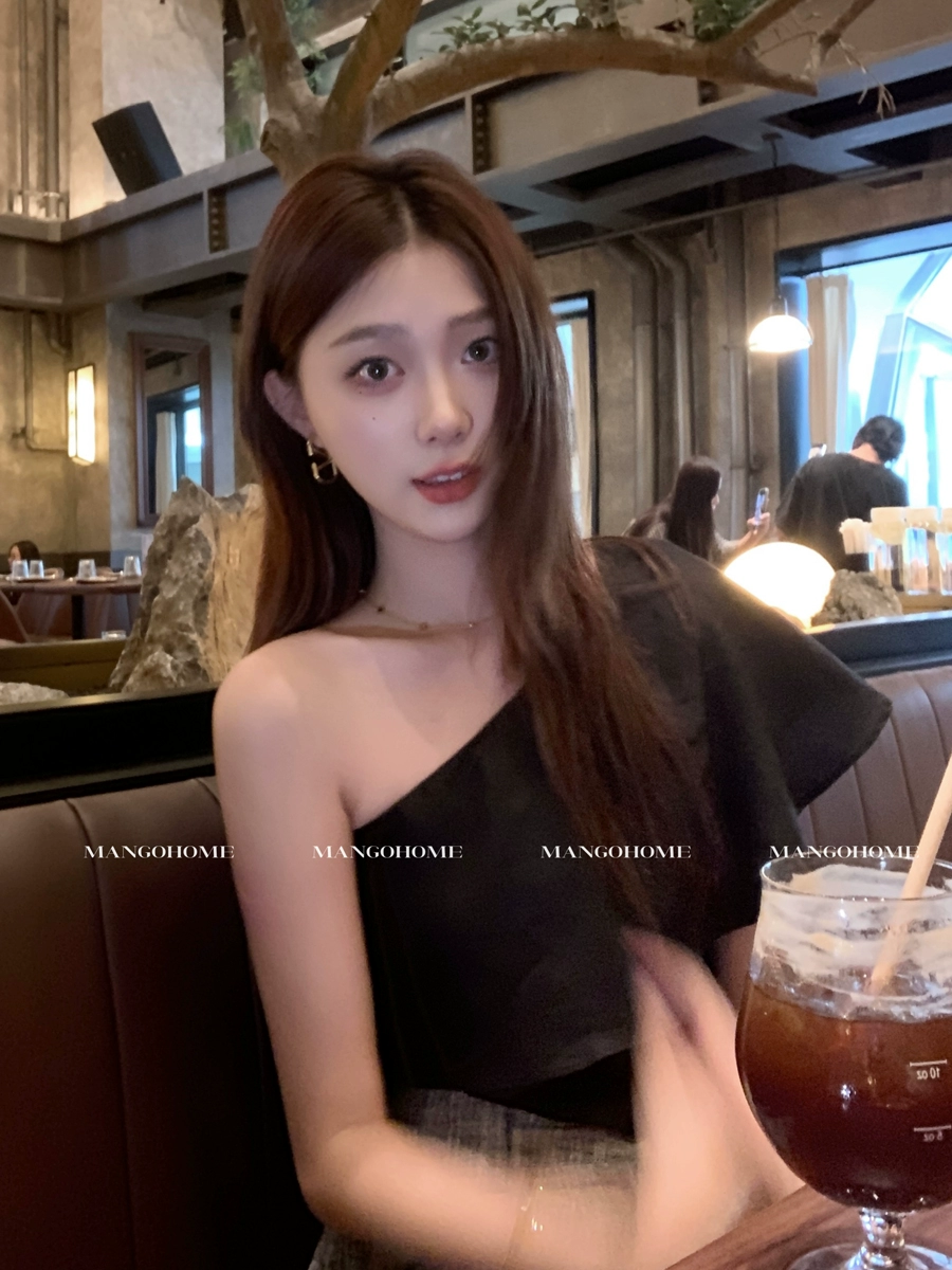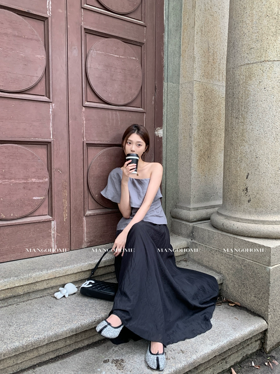 | nameOriginal | Ramie collarbone crop top shirt with sloping shoulders |
