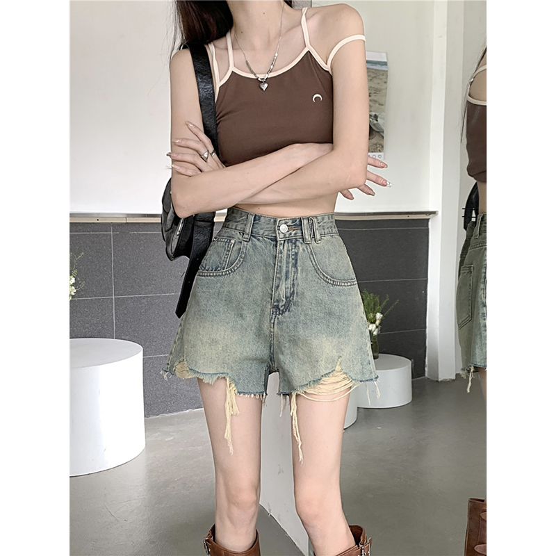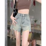| nameOriginal | Rapped Denim Shorts Women's Summer 2024 New Retro High Waist Slimming Design Sense A Wide Leg Pants |