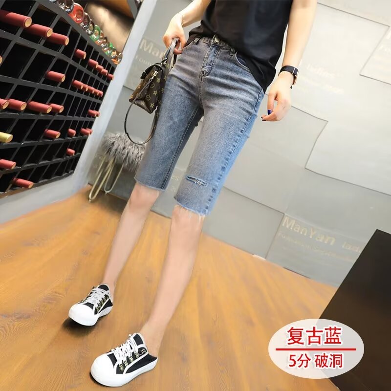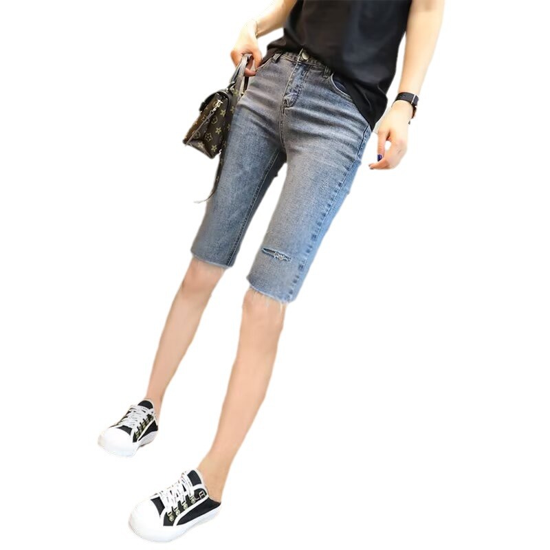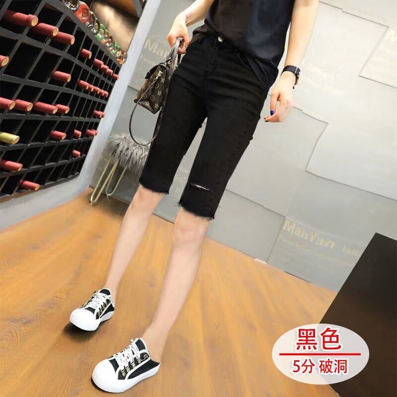 | nameOriginal | Rapped Five-point Denim Shorts Women's Summer Thin High-waist Slimming Black Five-point Medium Pants Tight Riding Pants Trendy Ins |