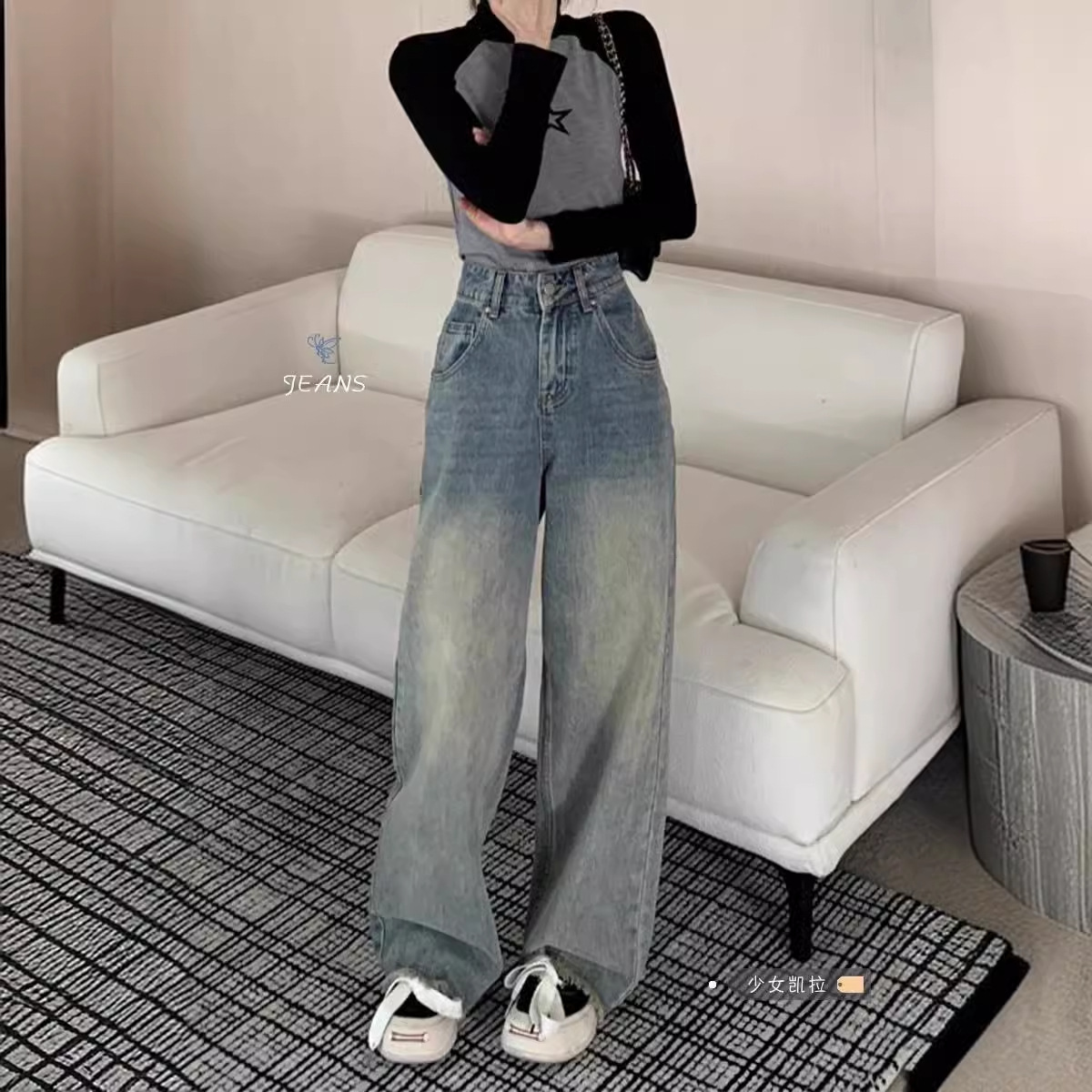 | nameOriginal | Rapped Mop High Waist Jeans Women's Spring and Autumn New Retro Straight Wide Leg Pants Daddy Pants Loose Pants Trousers |