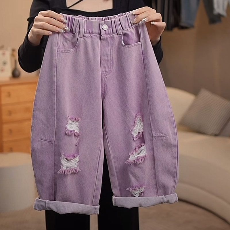 | nameOriginal | Rapped Powder Denim Boys and Girls Spring 2024 New Straight Tube Loose Pants Spring Thin Children's Rapped Pants Trendy |