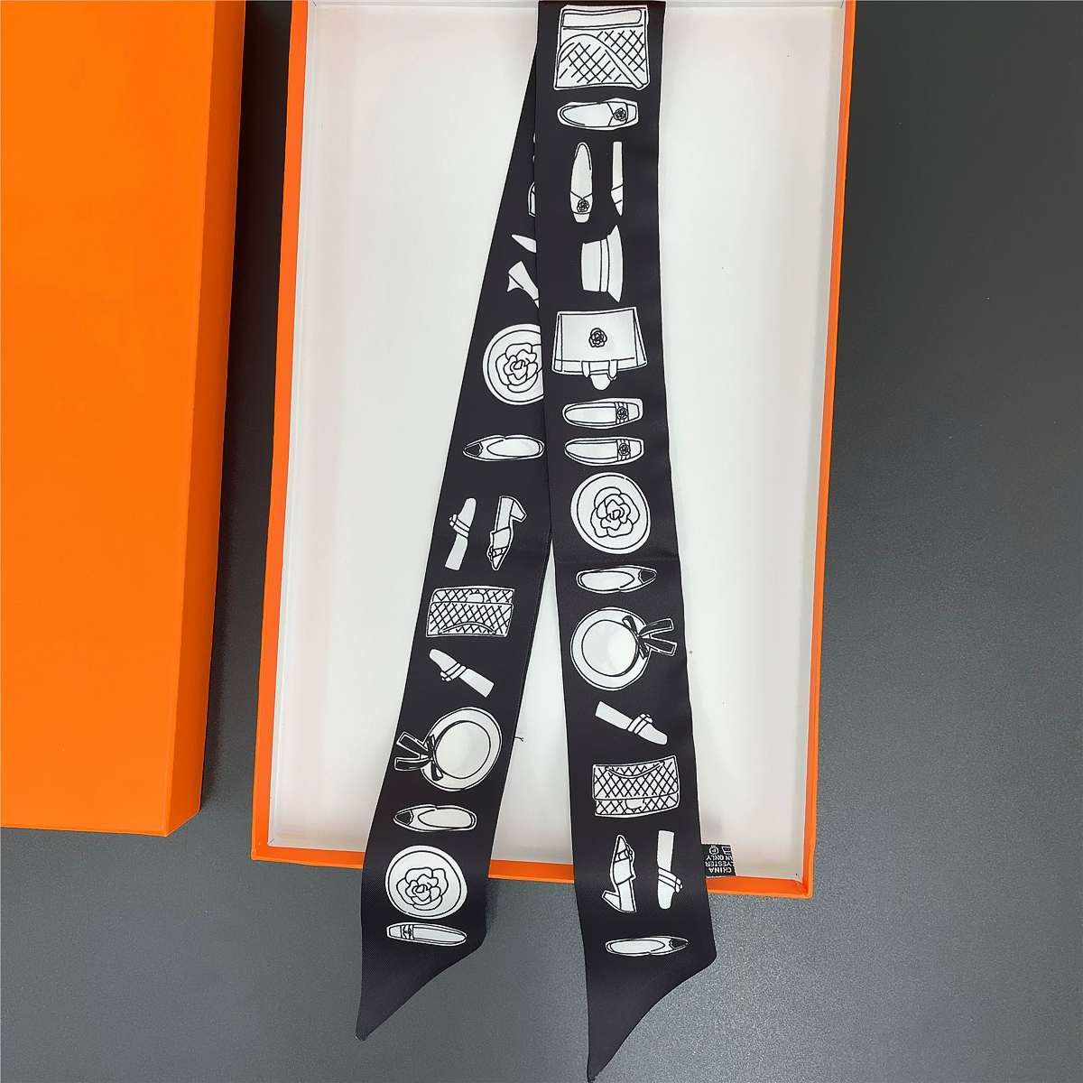 | nameOriginal | Rare treasure H family 2023 new double-sided silk scarf small strip tied to bag handle ribbon decoration ladies scarf |