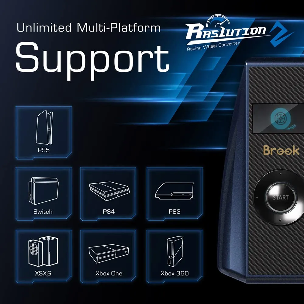 | nameOriginal | Brook Ras1ution 2 – Racing Wheel Converter for PS5, Xbox Series X/S, PS3, PS4, PS5, Xbox 360, Xbox One and Switch |