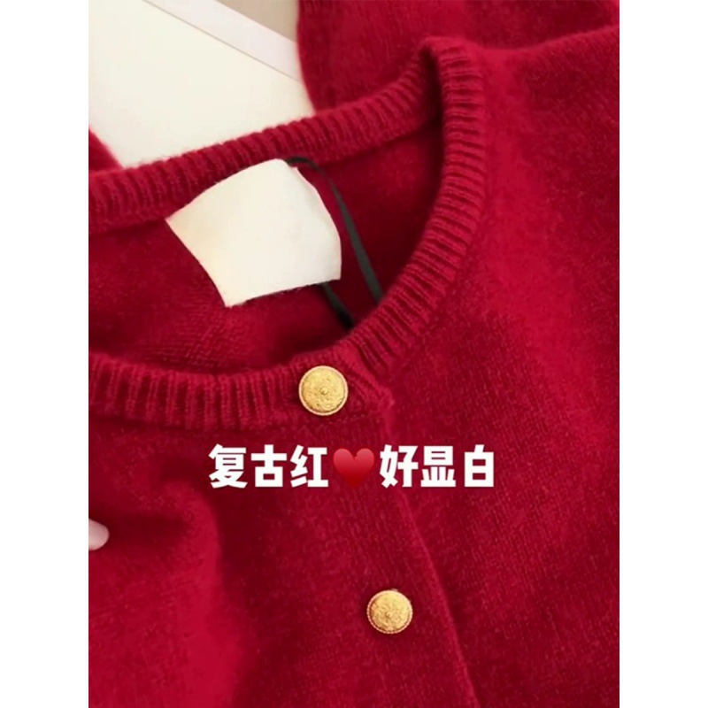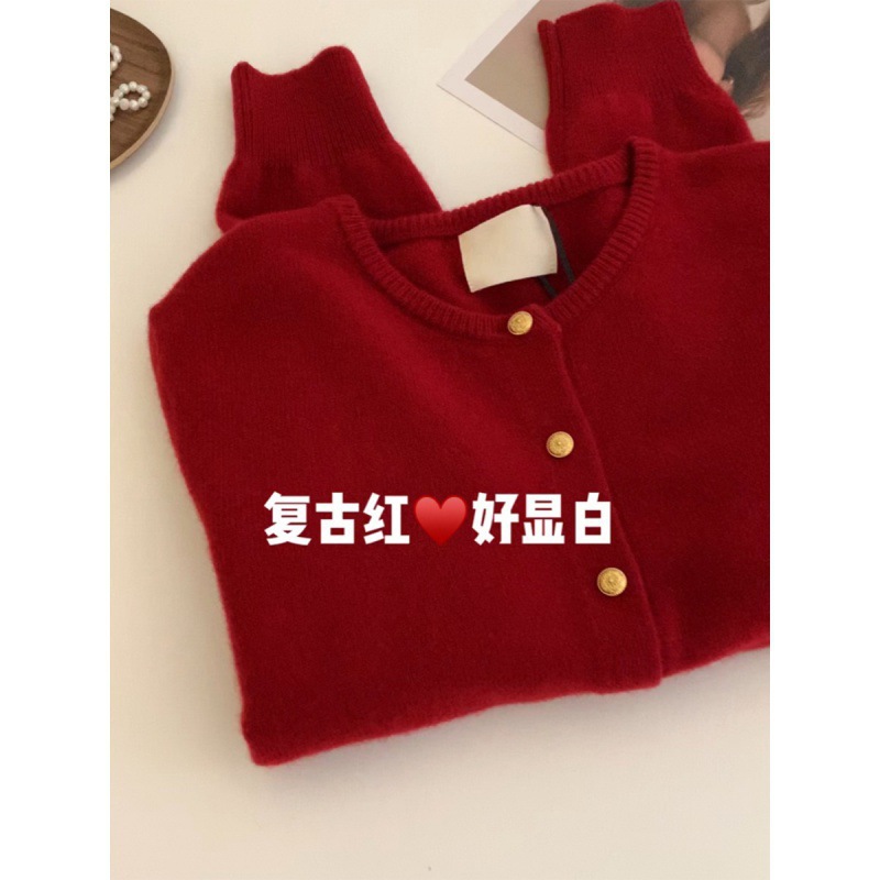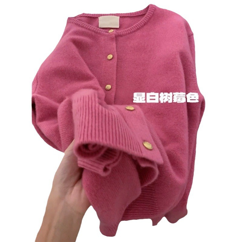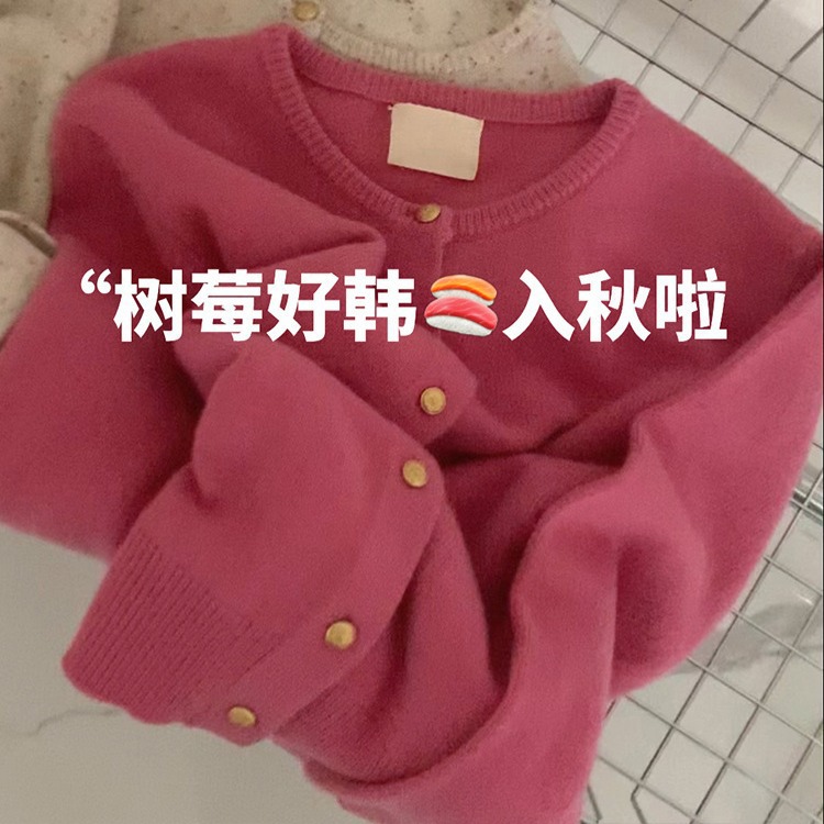 | nameOriginal | Raspberry Color Gold Button Soft Waxy Sweater Knitted Cardigan Women's Top High-grade Soft Waxy Autumn and Winter British Style Coat Women's Fashion |