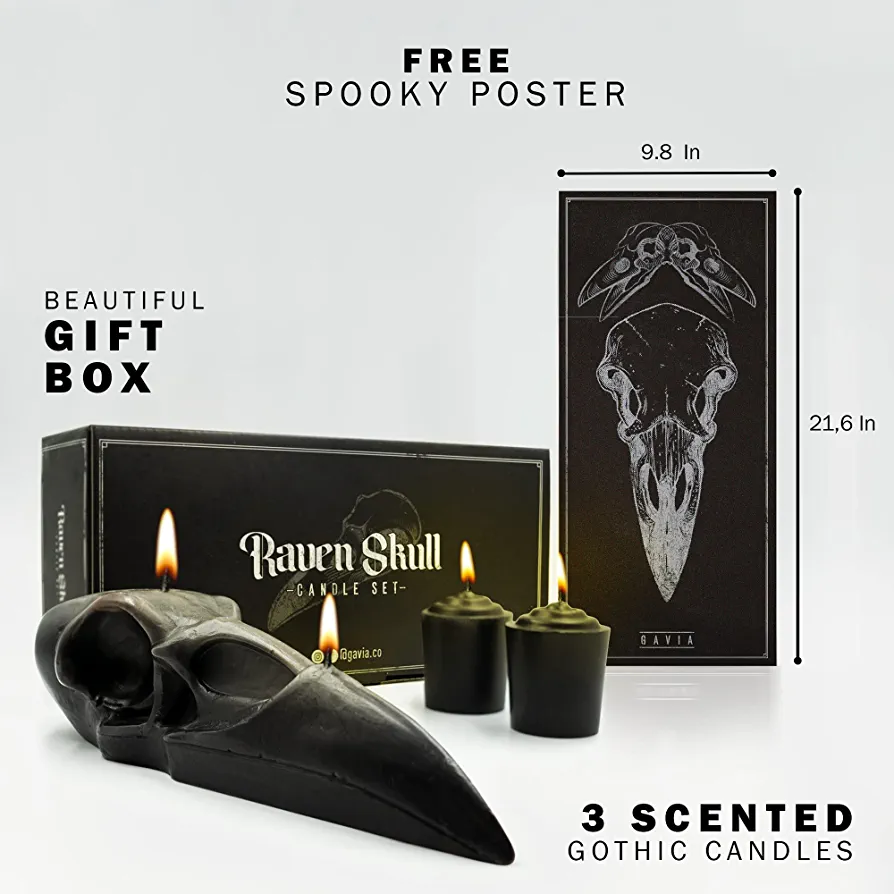 🕯️ GOTHIC POSTER INCLUDED – The candle comes with a spooky designed poster that can be combined with your gothic candle all year round. The poster, along with your raven candle holder and goth decorations, will enhance your modern or vintage goth house decor for a great creepy decor themed house. It is perfect for goth home decor, skull bathroom decor, horror room decor, and your oddities and curiosities shelf.