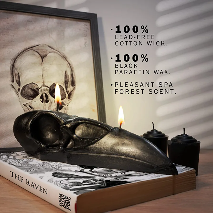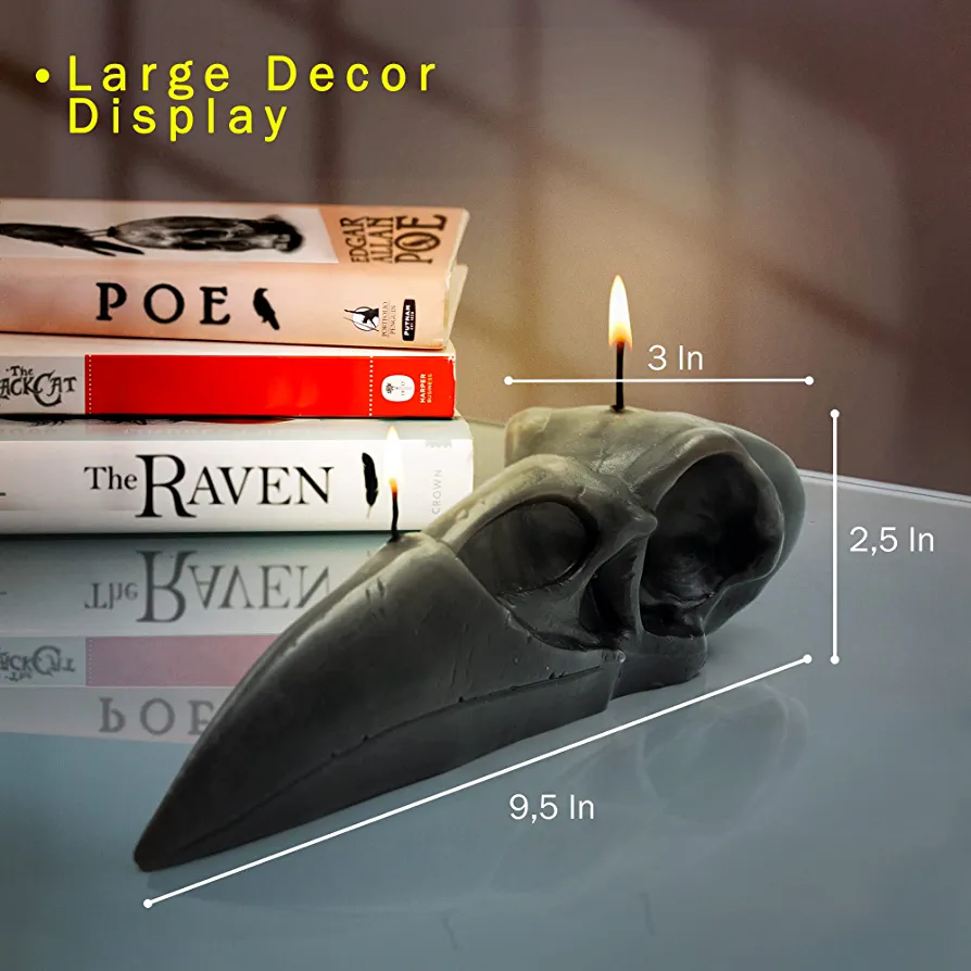🕯️ EVERYONE IS WELCOME! – Whether you’re looking for poe statue, spooky decor, satanic candle, edgar allan poe decorations, skull decorations, goth gifts for women, skeleton decor, or skull gifts for women, this spooky candle is the best option to complement your black gothic decor for home and oddities decor on your goth bathroom decor. It is an unmissable bird skull candle that will add a touch of gothic elegance to your space.
