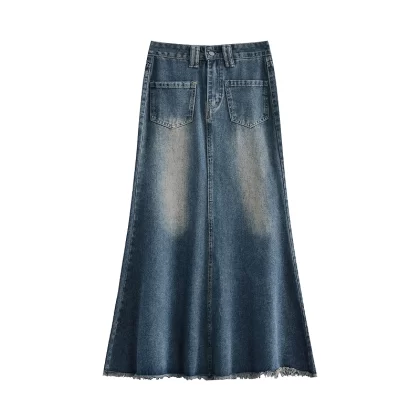 | nameOriginal | Raw edge blue spring and autumn distressed half-length denim fishtail skirt |