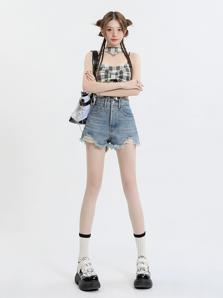 | nameOriginal | Raw edge high waist women's summer A-line hip-hugging denim shorts |