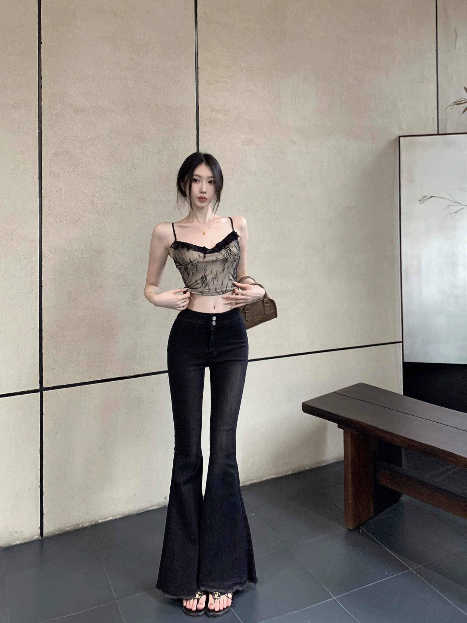 | nameOriginal | Raw-edge paneled high-waisted slim-fit slightly flared jeans |