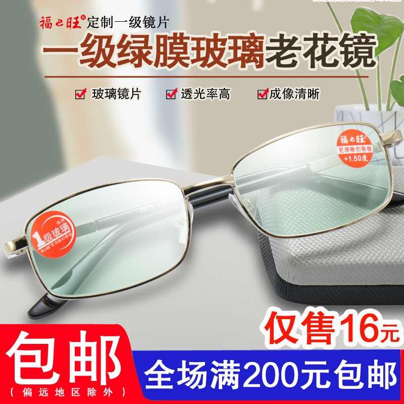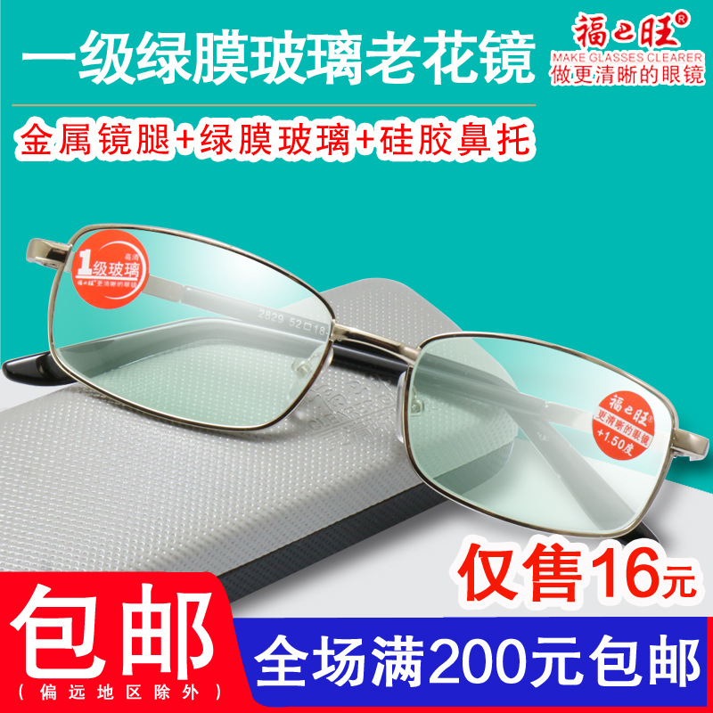 | nameOriginal | Reading Glasses Men and Women Fashion Comfortable Green Film Glass Lens HD Metal Frame Old Man Fuwang Glasses 2829 |
