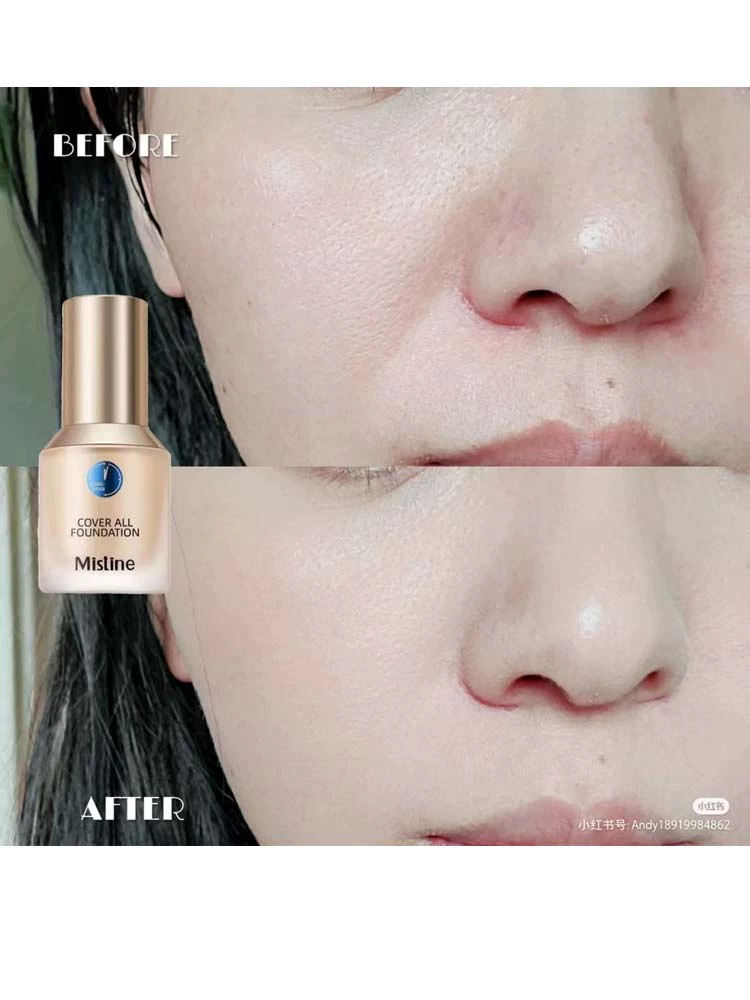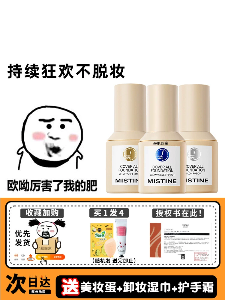 Ready-made mistine small blue shield liquid foundation concealer, oil control, non-removing makeup, long-lasting dry combination oily skin