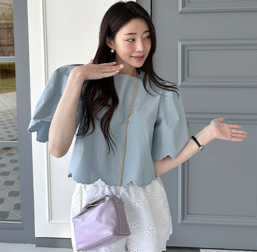 | nameOriginal | Ready stock Korean style wavy edge puff sleeve top with embroidery |