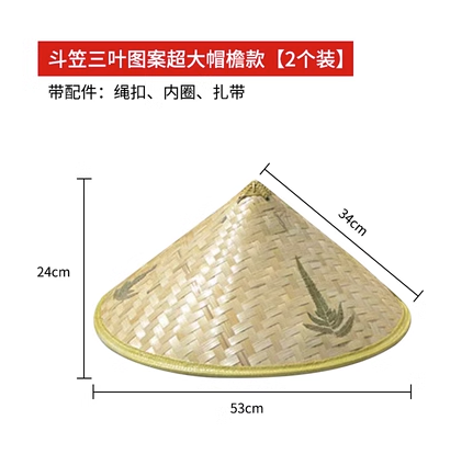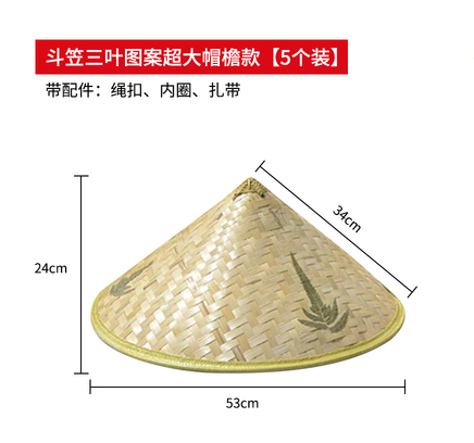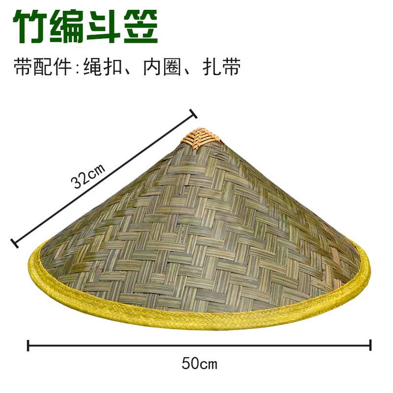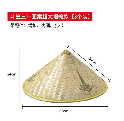 Ready supply of bamboo woven sunshade, sun protection bucket hat, large-brimmed straw hat, farmer's and men's travel rainproof hat, three-leaf hat