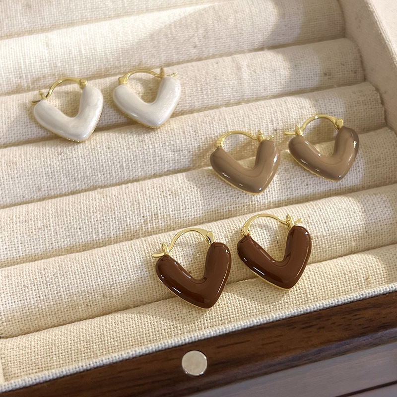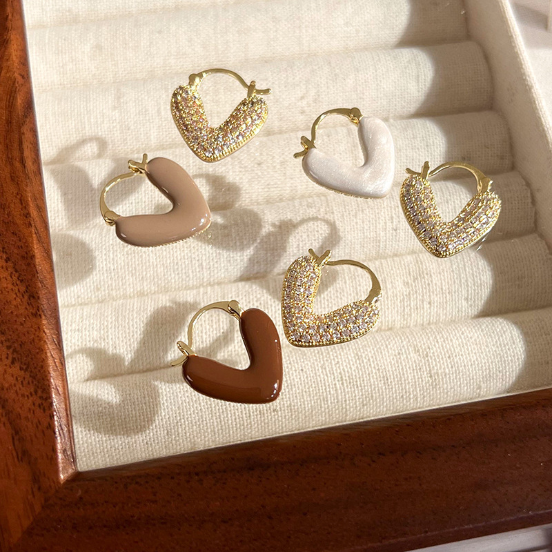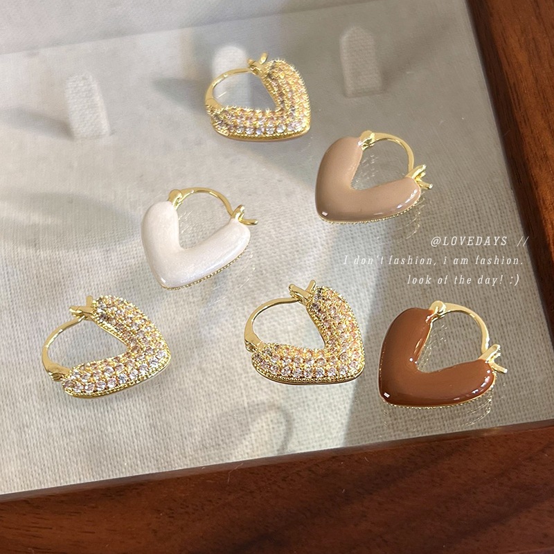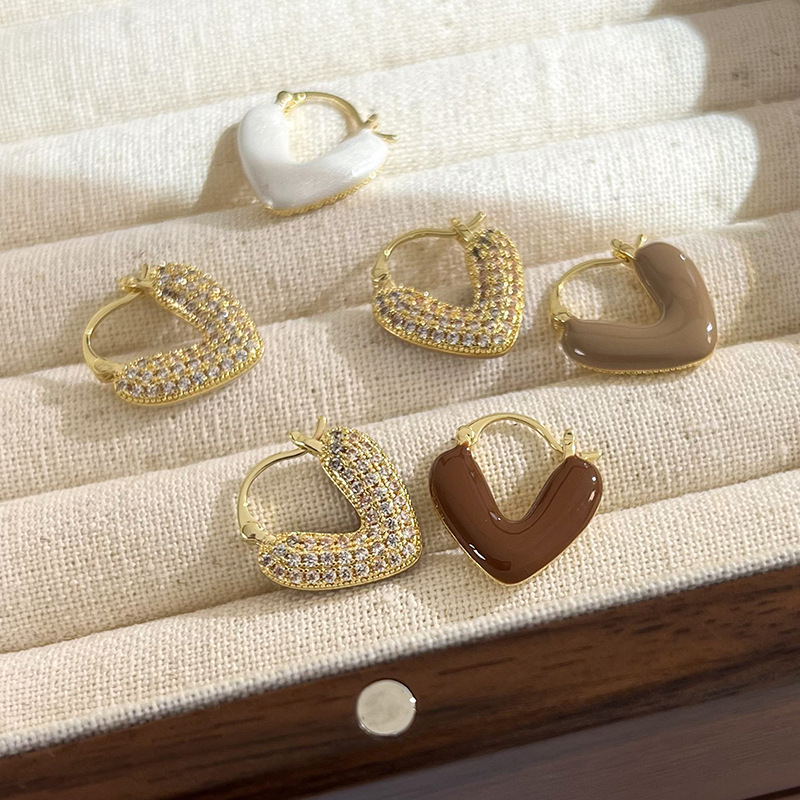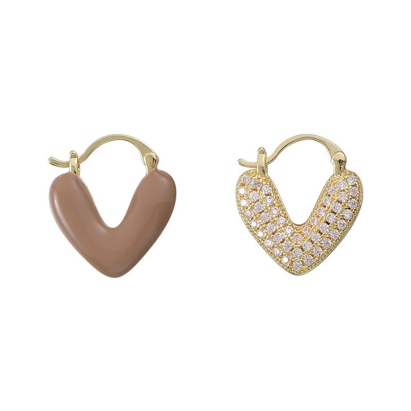 Real Gold electroplated heart-shaped drop-oil zircon earrings Korean style ins niche design ear buckle elegant light luxury earrings for women