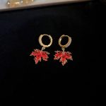 Real Gold Electroplated Silver Needle Zircon Maple Leaf Earrings French Elegant Fashion Earrings Light Luxury Niche Design Sense Earrings for Women