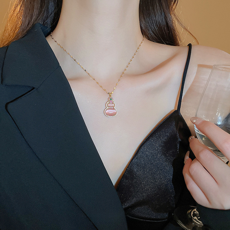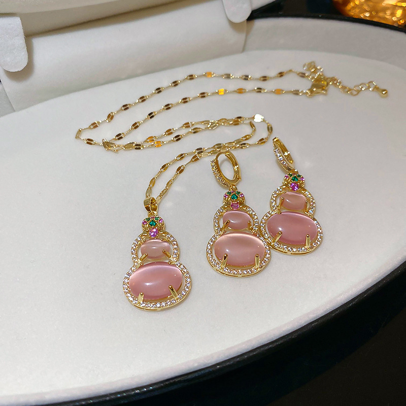 | nameOriginal | Real Gold Electroplated Zircon Cat's Eye Gourd Necklace suit New Chinese Style National Fashion Elegant Clavicle Chain Light Luxury Women's Necklace |