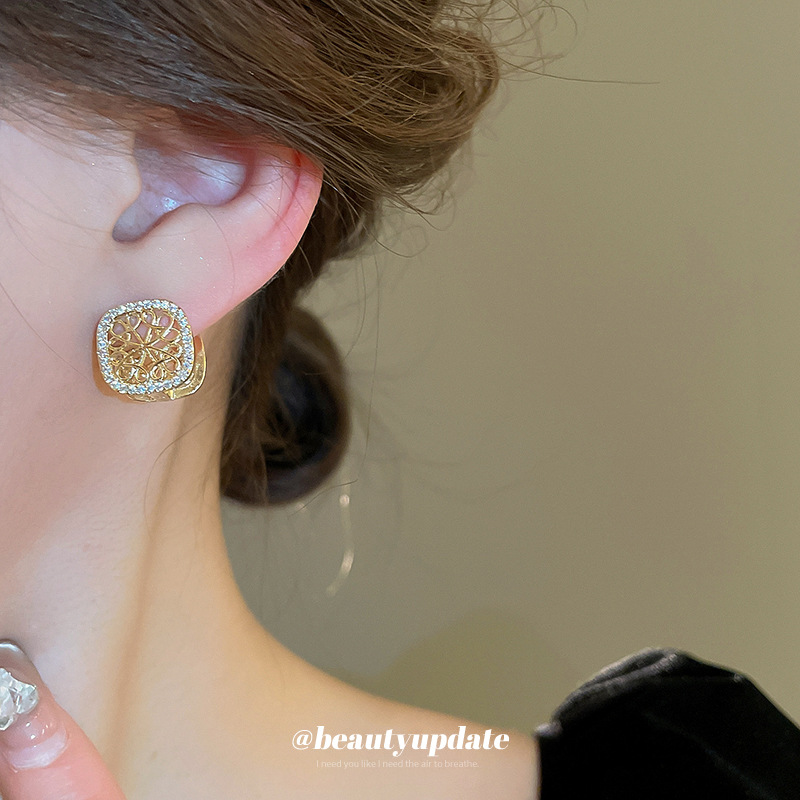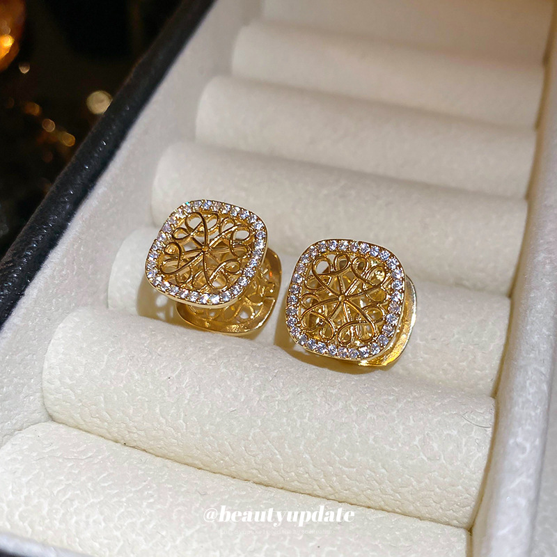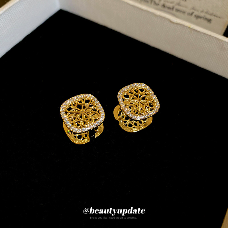 | nameOriginal | Real Gold electroplated zircon hollow pattern square ear buckle light luxury design personalized earrings fashion high-grade earrings |