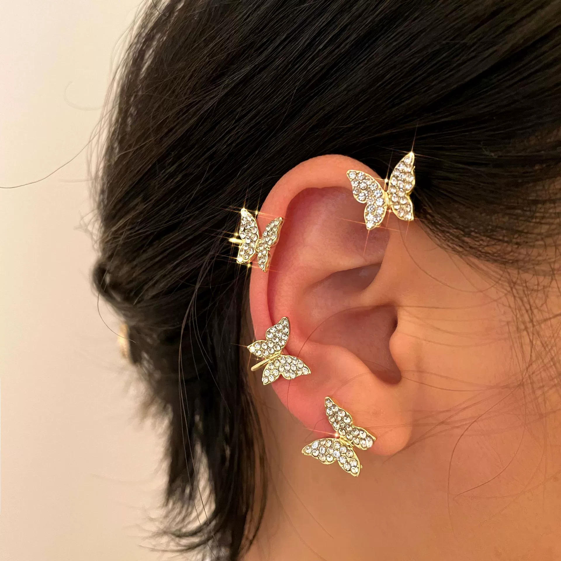 Real gold plated women’s earrings with lightning surrounding diamonds