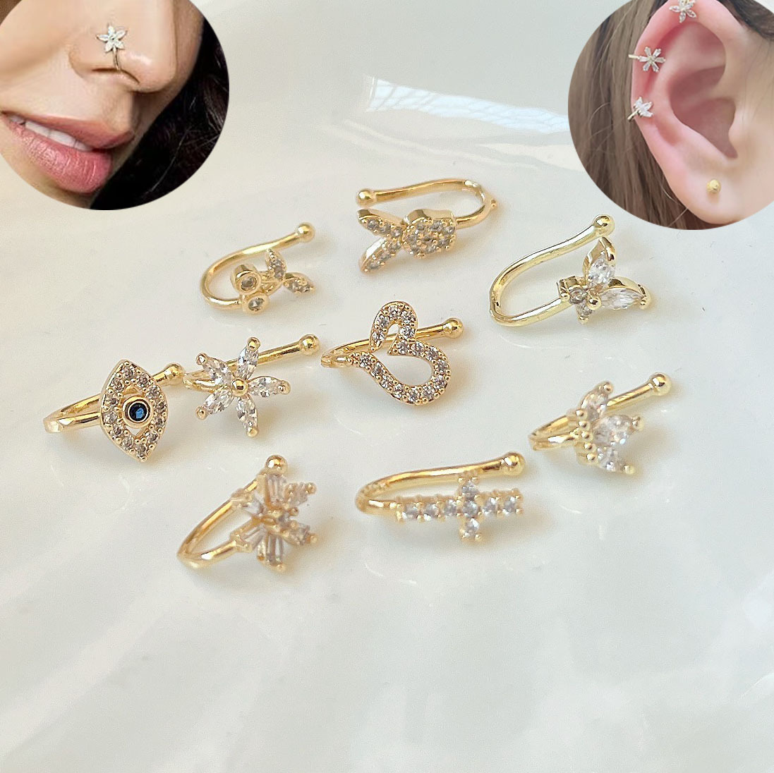| nameOriginal | Real gold plating creative U-shaped nose clip ear bone clip copper inlaid zircon love Crown nose ring fake puncture nose jewelry |