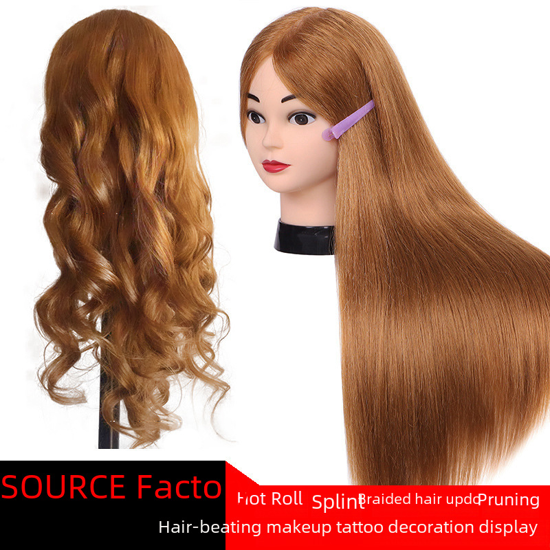 Real hair head model can be permed and rolled dummy head Model Practice fine scissors modeling updo hair braiding hair hairdressing doll head model head