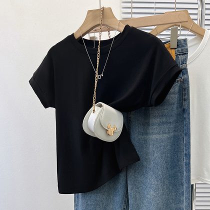 Real-life 2024 Xiaofei Sleeve T-shirt Women’s Summer Short-sleeved Shoulder Chic Tight Top