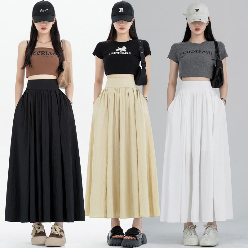 | nameOriginal | Real-life French-style Elegant Hip Covering Slimming Skirt Women's Summer Pleated Design Sense Niche Large A- line Long Skirt |