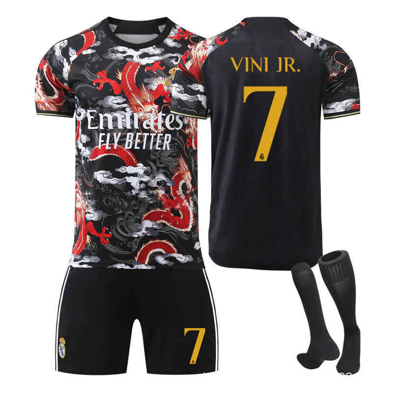 | nameOriginal | Real Madrid Football Uniform 2425 Red and Black Dragon Pattern Edition Children's Training Adult suit Sports Uniform Group Buying Men's and Women's Jersey |