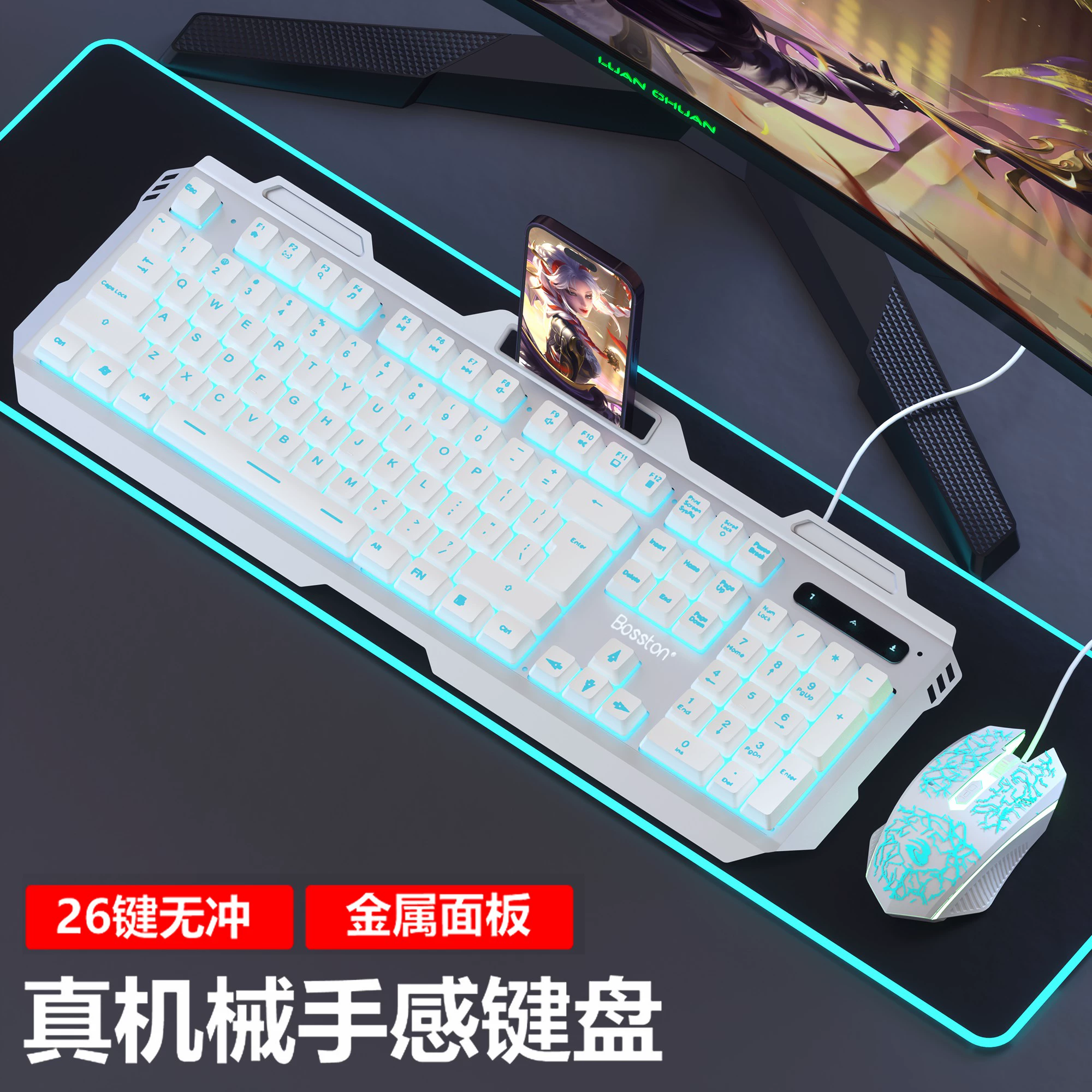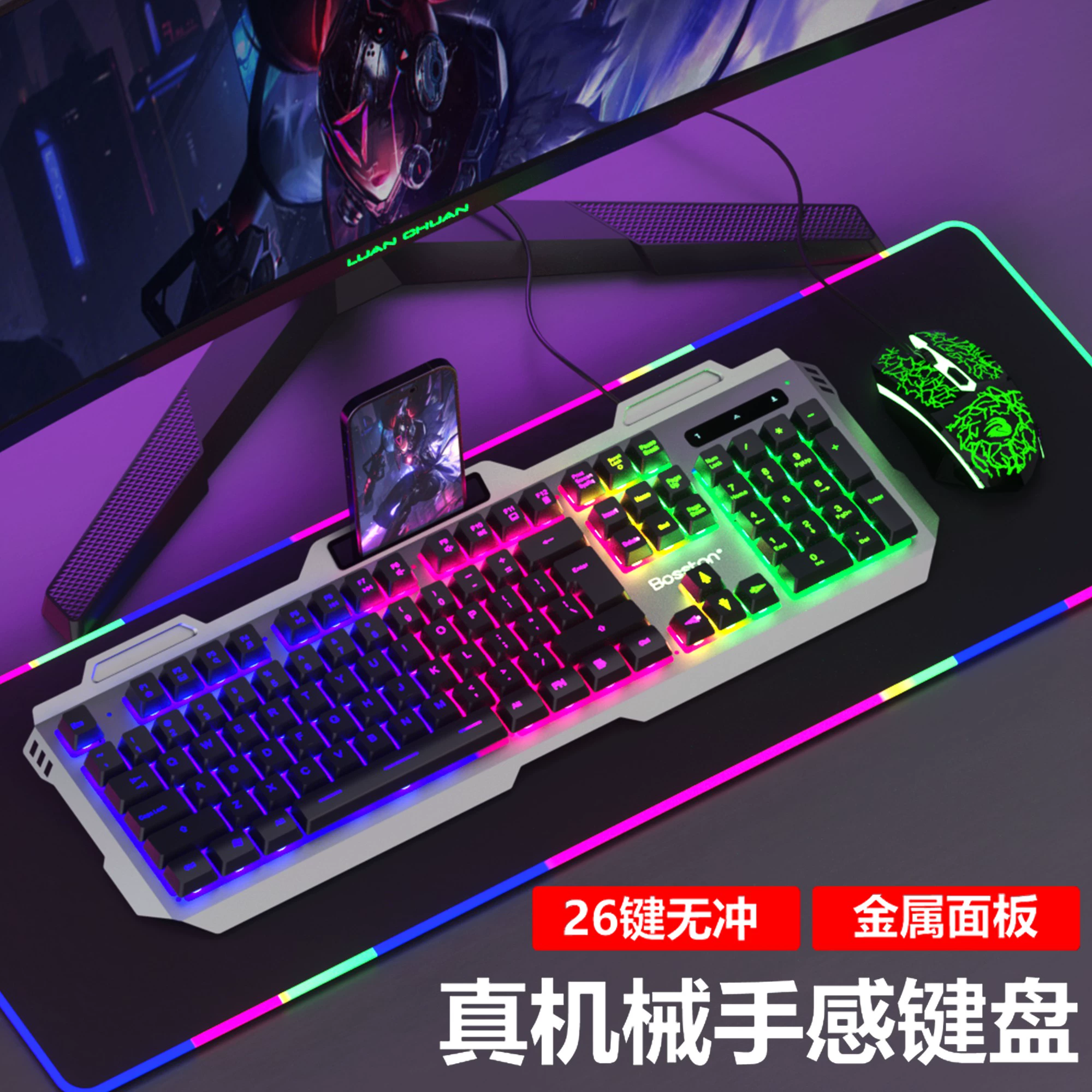 | nameOriginal | Real mechanical feel keyboard and mouse set wired e-sports game dedicated keyboard and mouse computer desktop USB external connection |