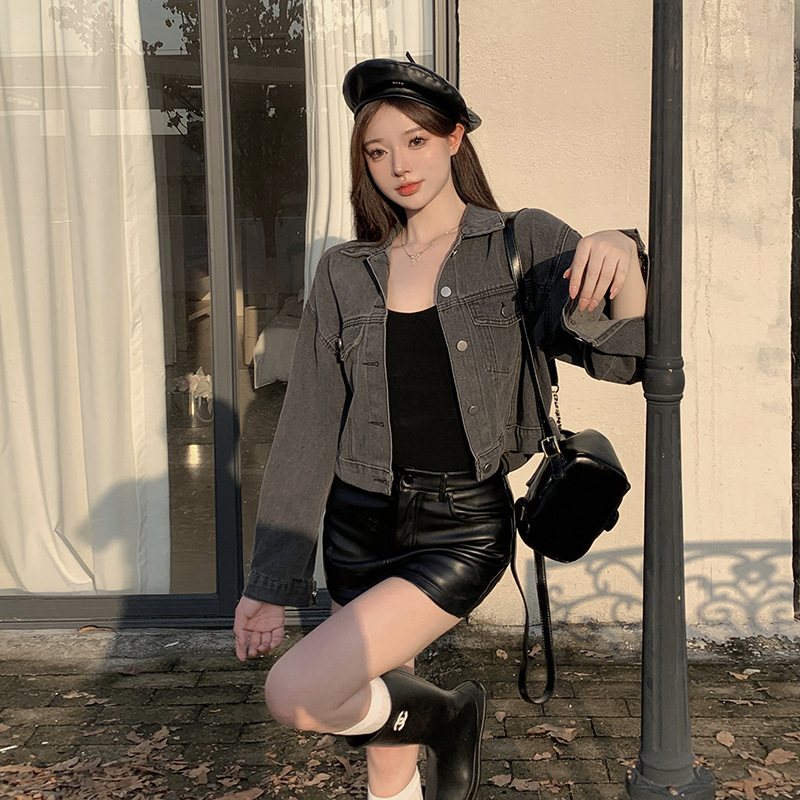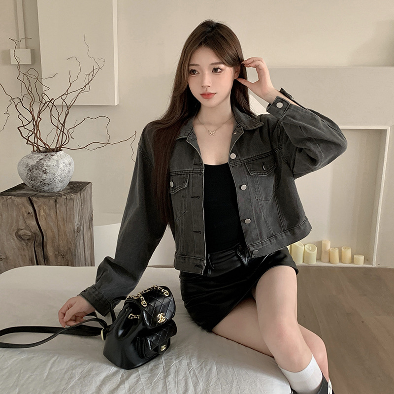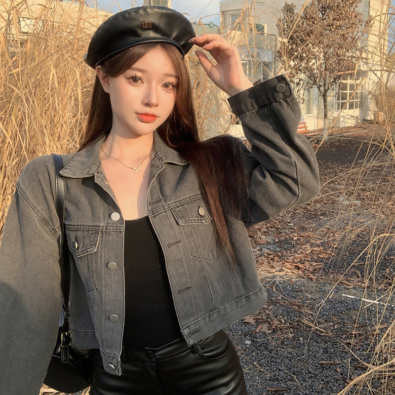 | nameOriginal | Real price! Denim Coat Women 2024 Spring New Grey Slim Short Casual Top |