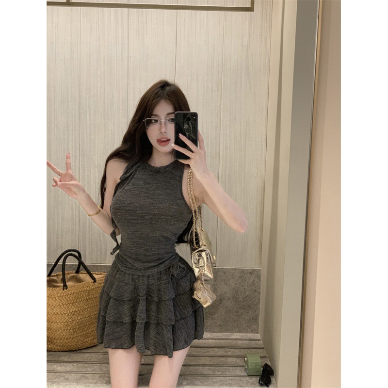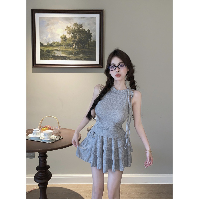 | nameOriginal | Real Price Real Shot Design Sense Niche Sleeveless Neck Tie Top Ballet Style Cake Skirt Set for Women |