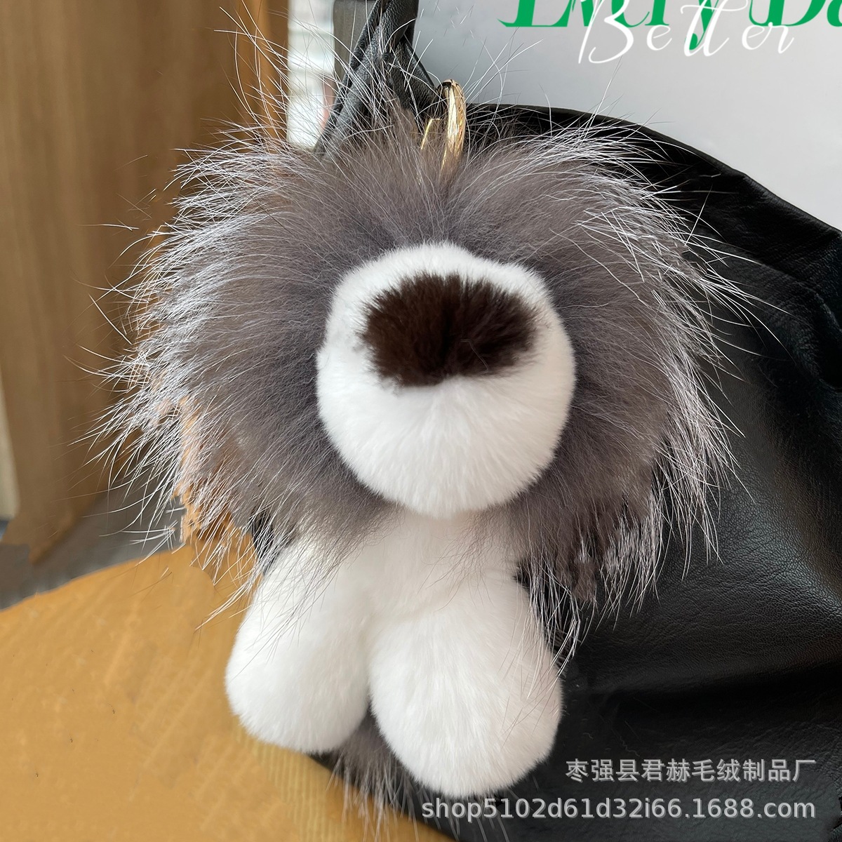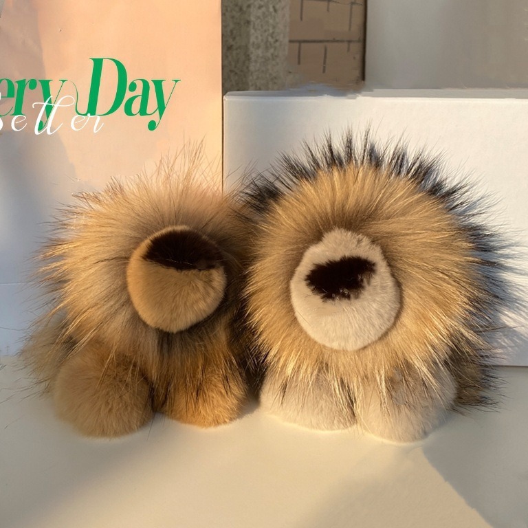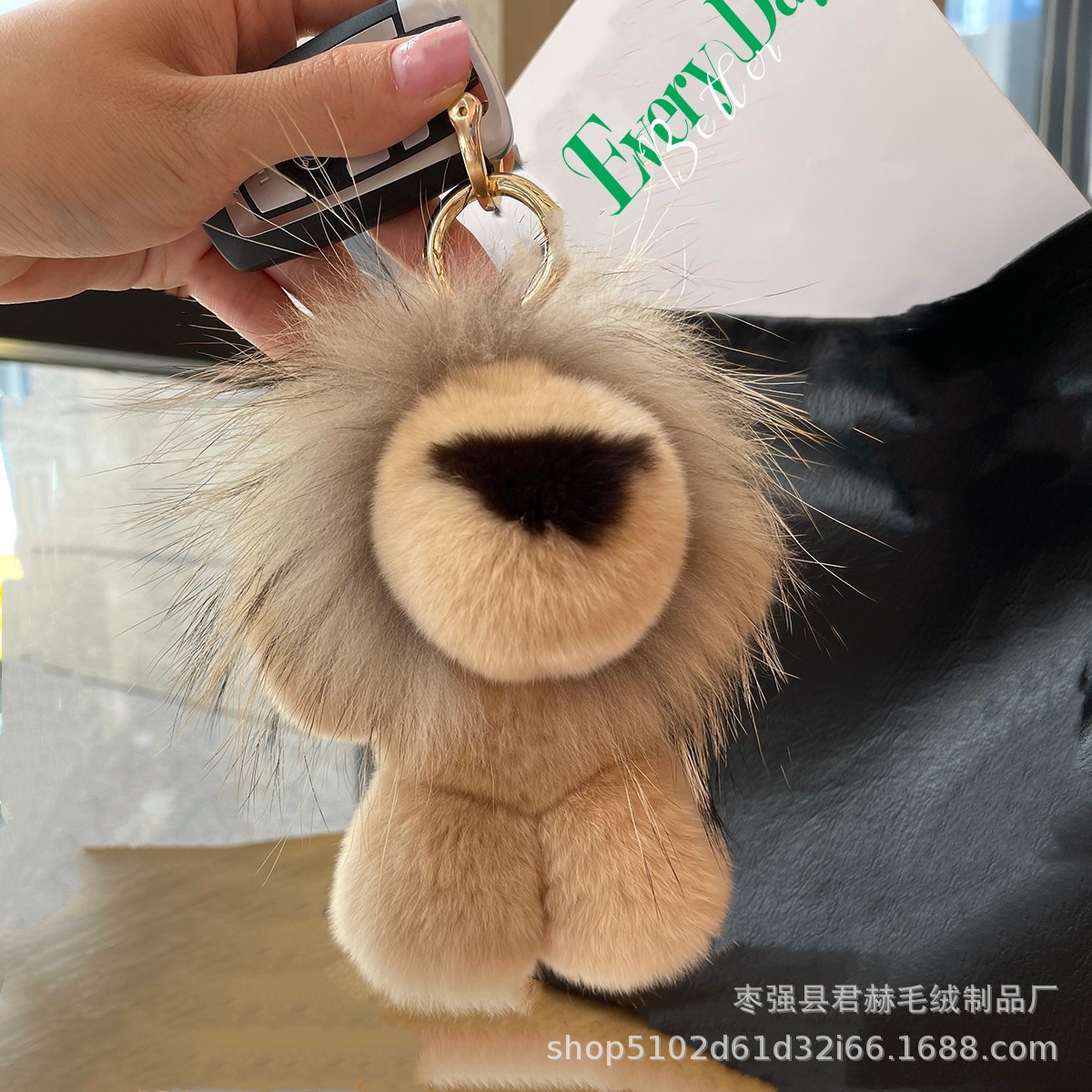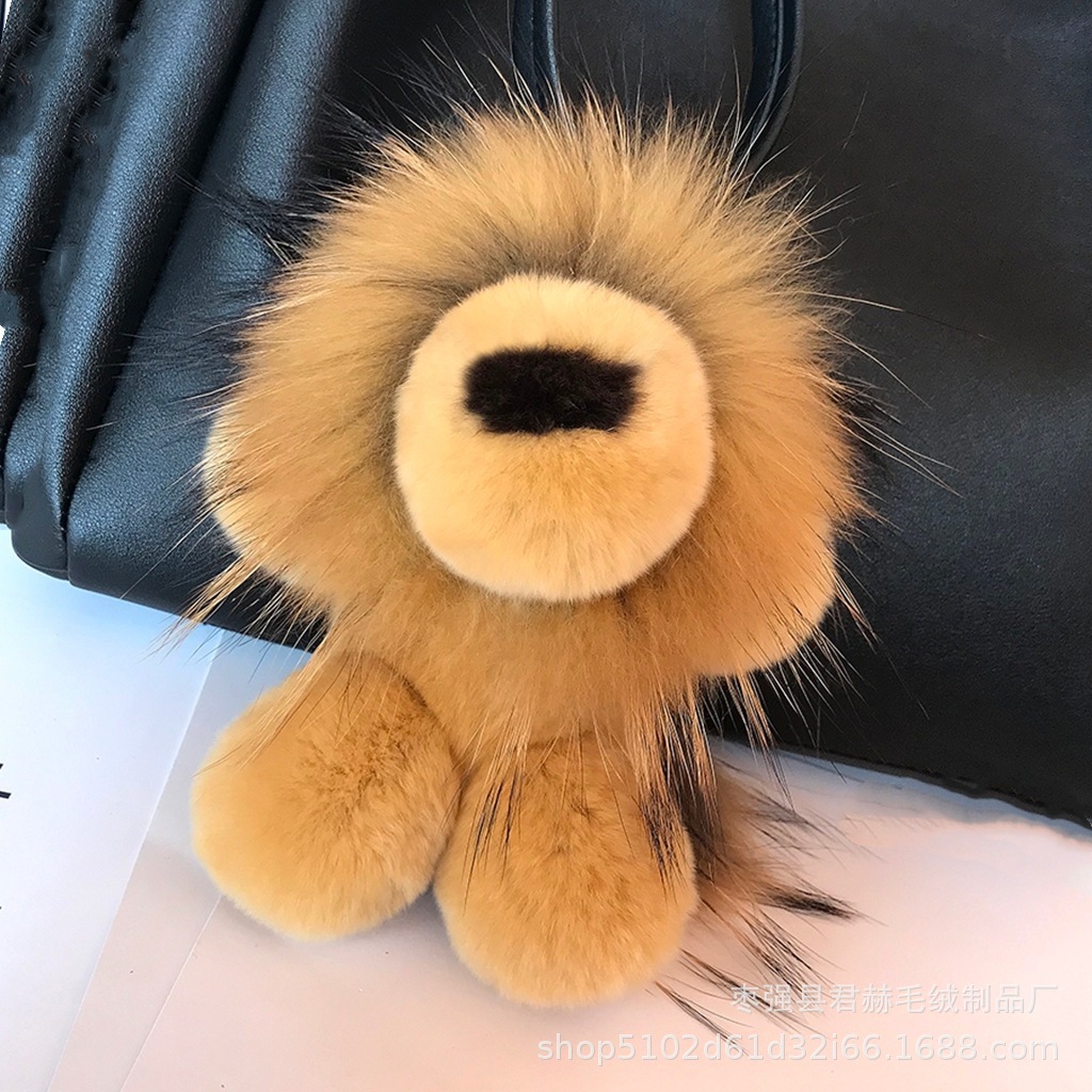 Real Rex rabbit fur lion bag pendant raccoon fur lion Simba plush doll car keychain hanging