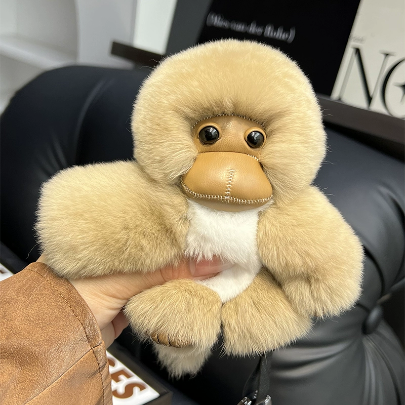 Real rex rabbit fur little monkey car keychain pendant ins cute plush doll doll school bag pendant gift