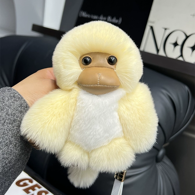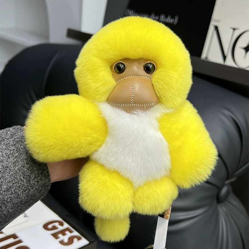 Real Otter Rabbit Hair Little Monkey Car Keychain Ins Cute Plush Doll School Bag Hanging Gift