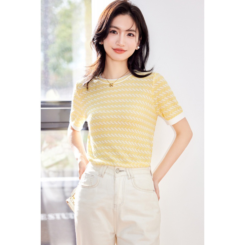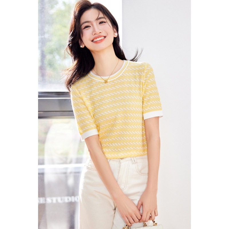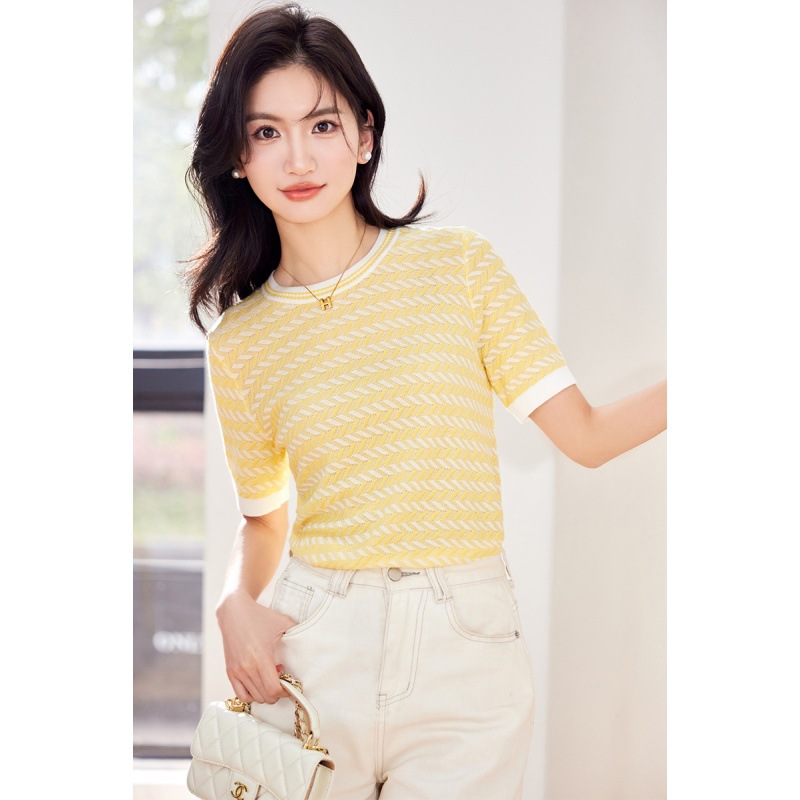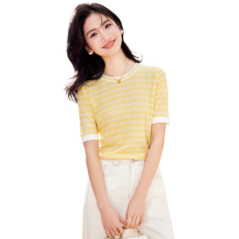 | nameOriginal | Real shot ◆ in stock ◆ 2024 summer xiangfeng short light ice silk sweater striped short sleeve top for women in summer |