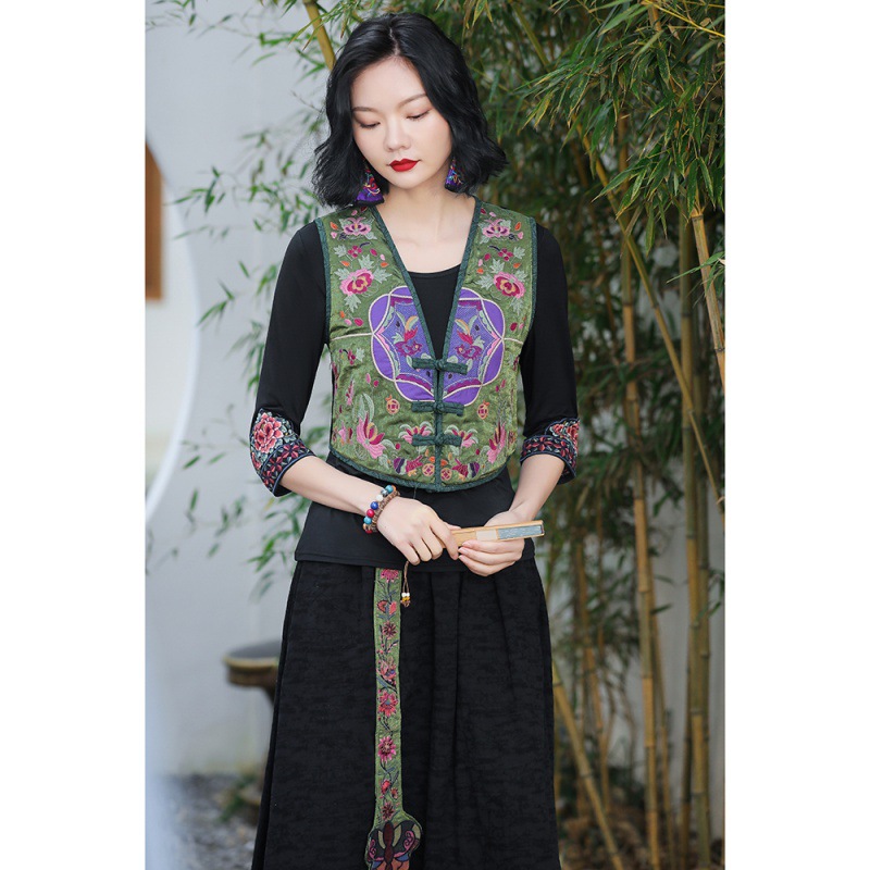 | nameOriginal | Real-shot 2022 Spring Ethnic V-neck Embroidered Vest Short Sleeveless Waistcoat Solid Color Commuter Jacket |