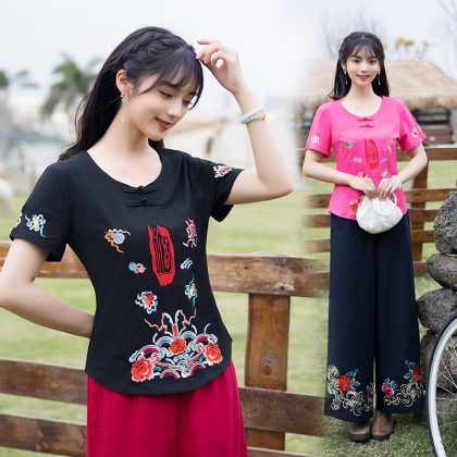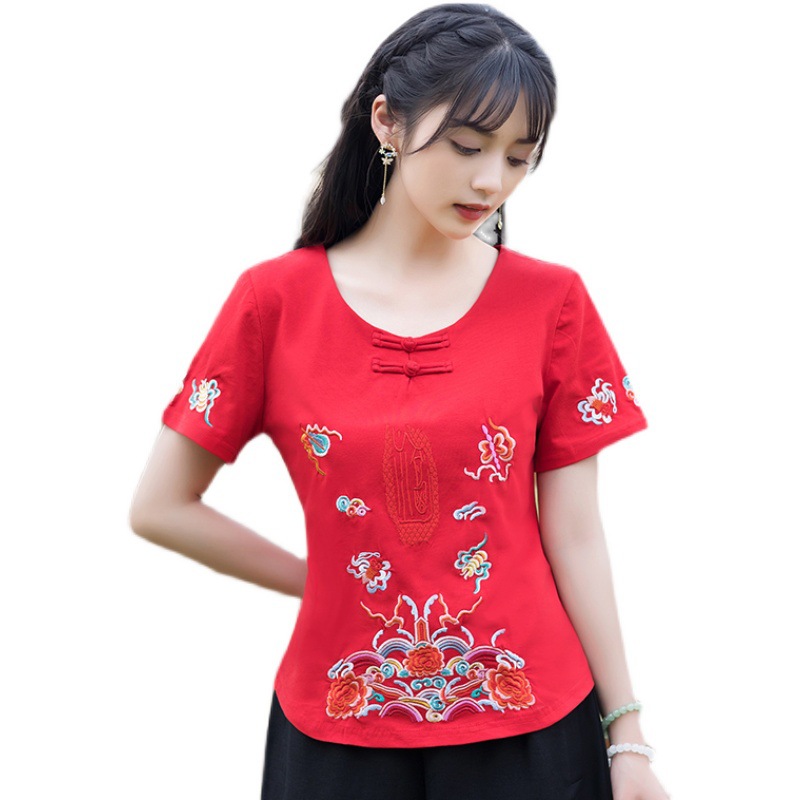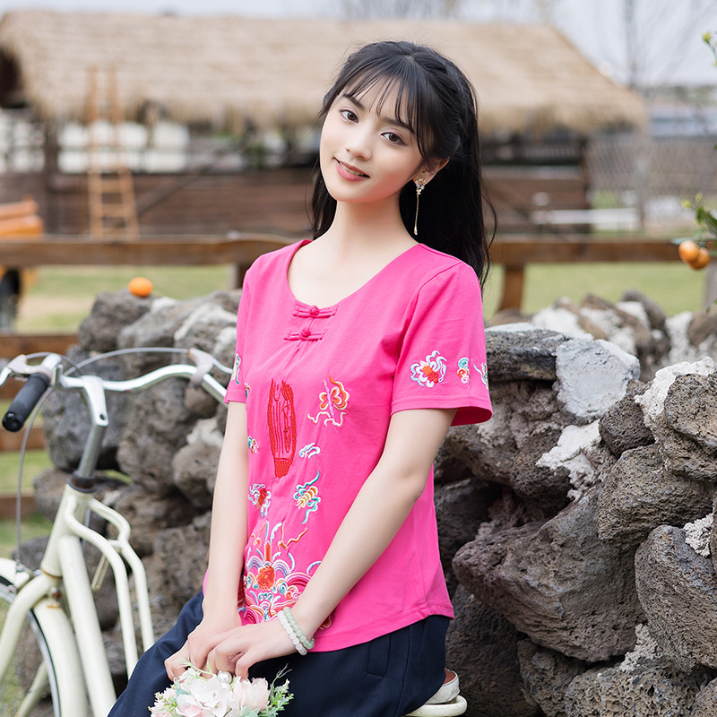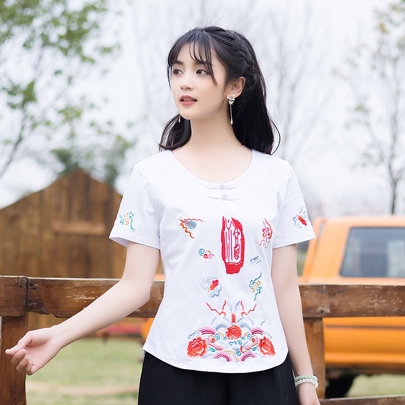 | nameOriginal | Real shot 2022 summer new slim ethnic embroidered T-shirt |