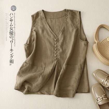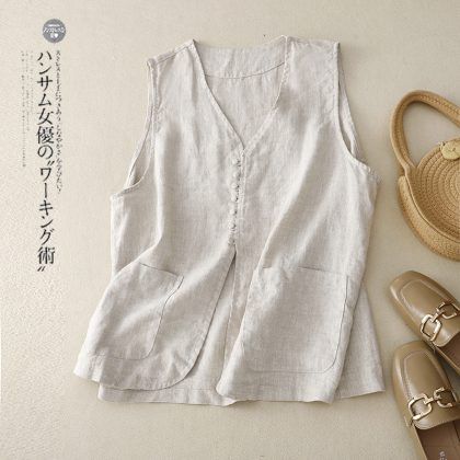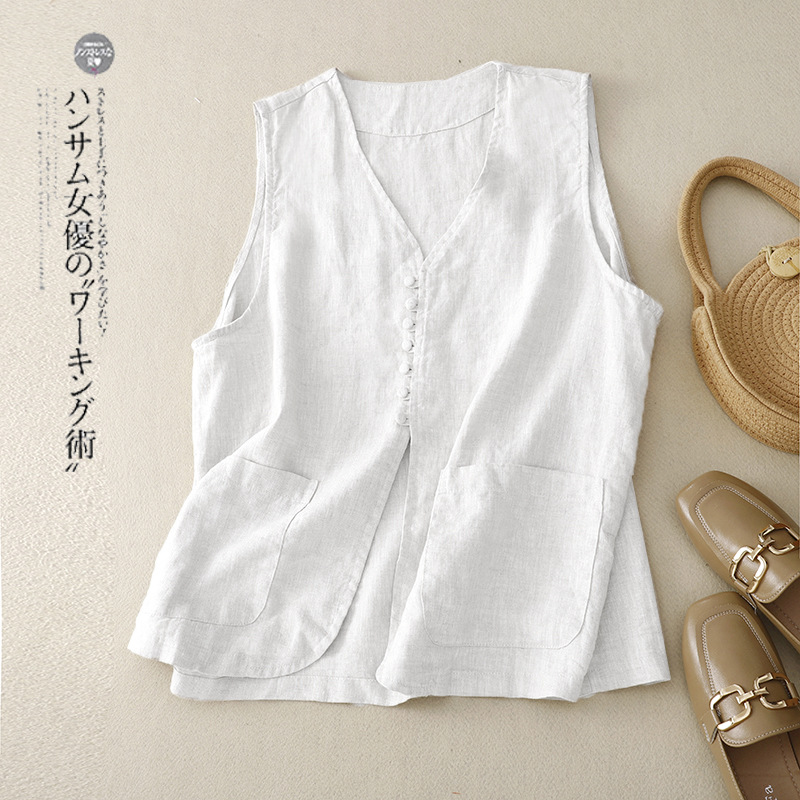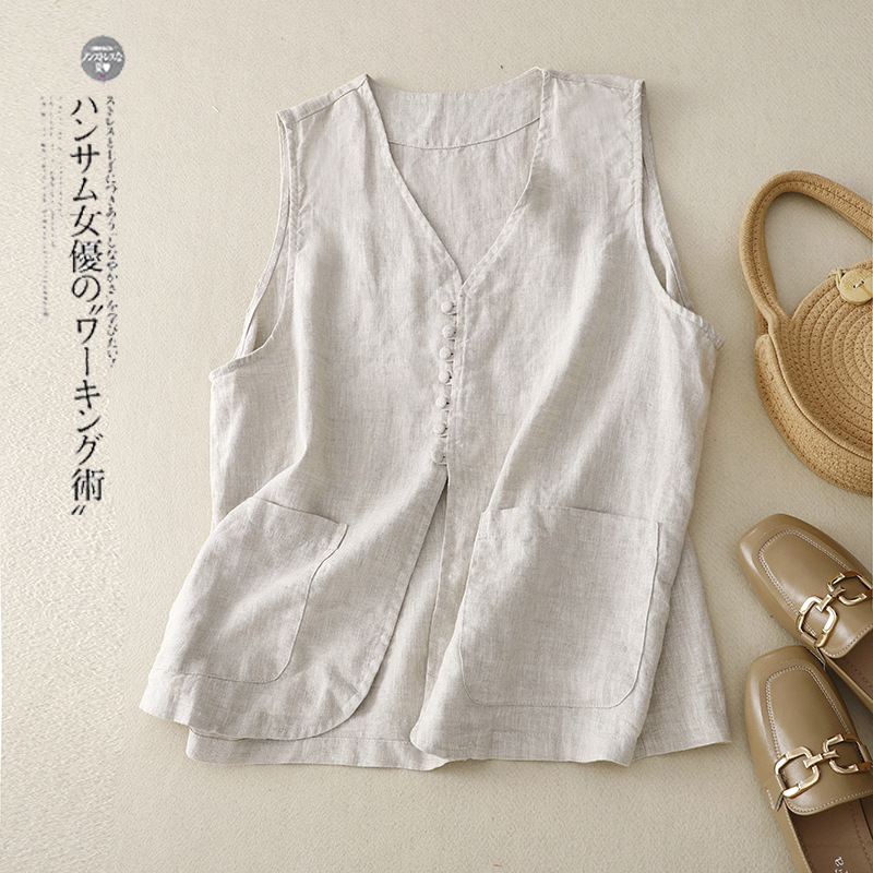 | nameOriginal | Real Shot 2023 Artistic Cotton and Linen Vest Jacket New Single-breasted Stacked Sleeveless Vest Simple Short Vest for Women |