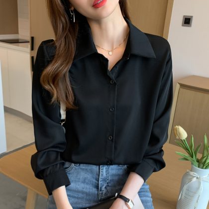 | nameOriginal | Real shot 2023 Autumn New Korean style retro simple shirt Women's solid color elegant slimming long sleeve shirt Women |