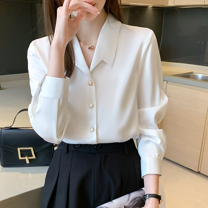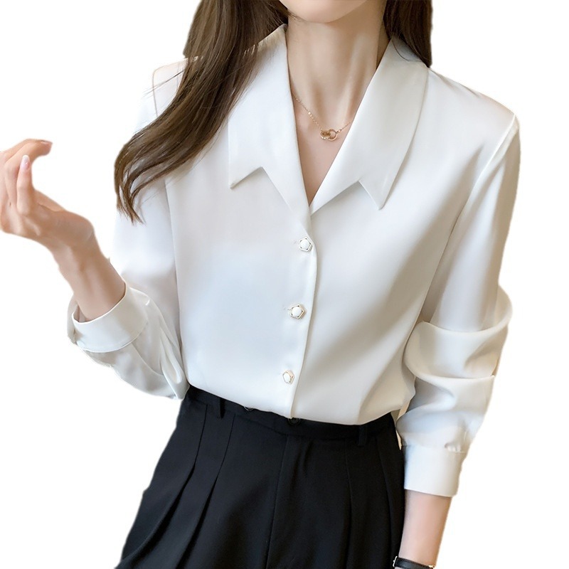 | nameOriginal | Real shot 2023 autumn new long sleeve satin shirt female commuter temperament draping texture solid color all-match slimming female |