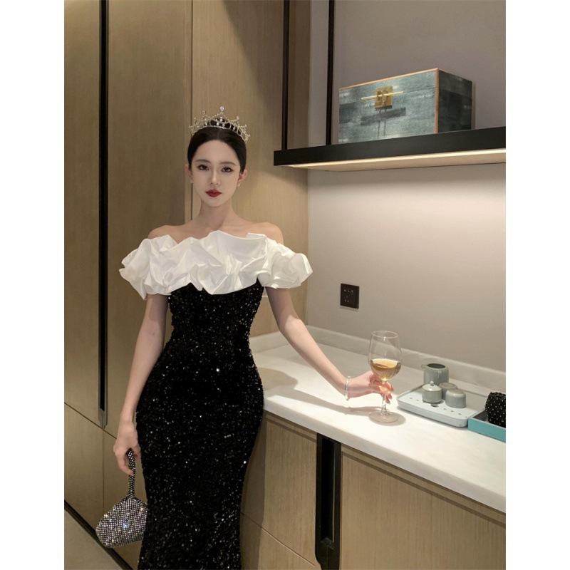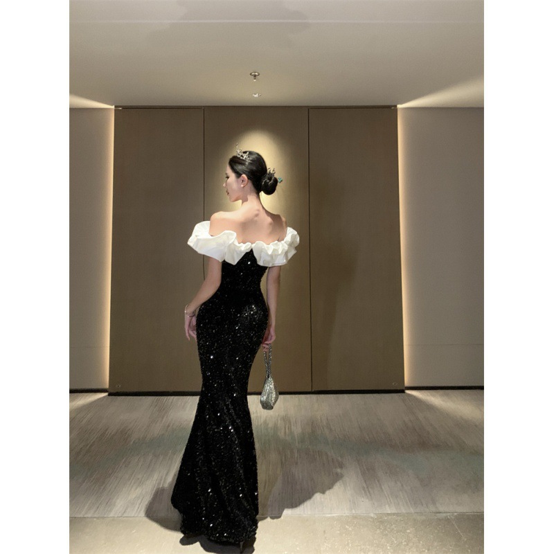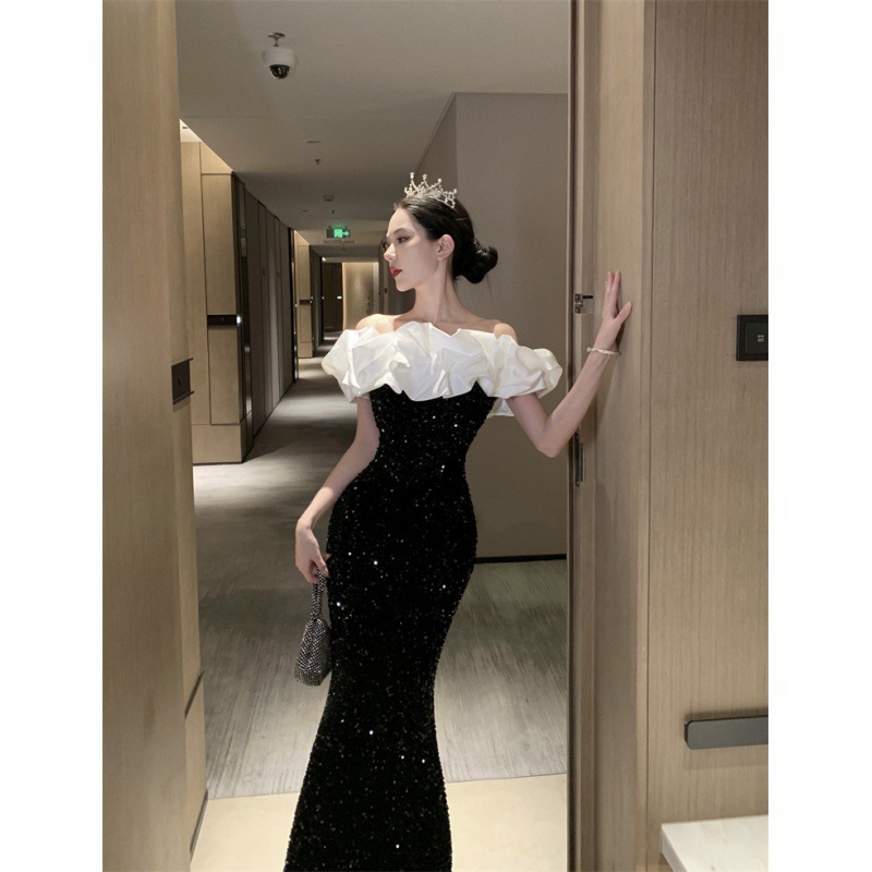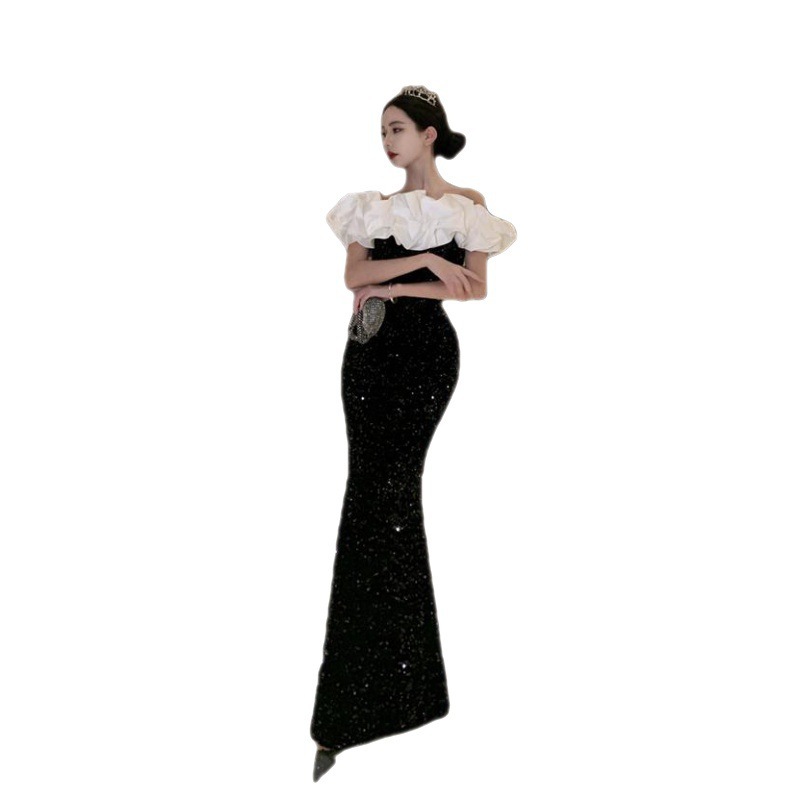 | nameOriginal | Real Shot 2023 Fashion New Elegant Temperament Design Sense Shoulder Sequin Velvet Dress Long Women |