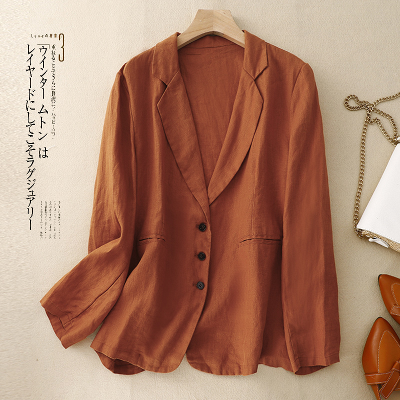 | nameOriginal | Real shot 2023 new retro suit jacket women's casual lapel outer linen elegant cardigan |